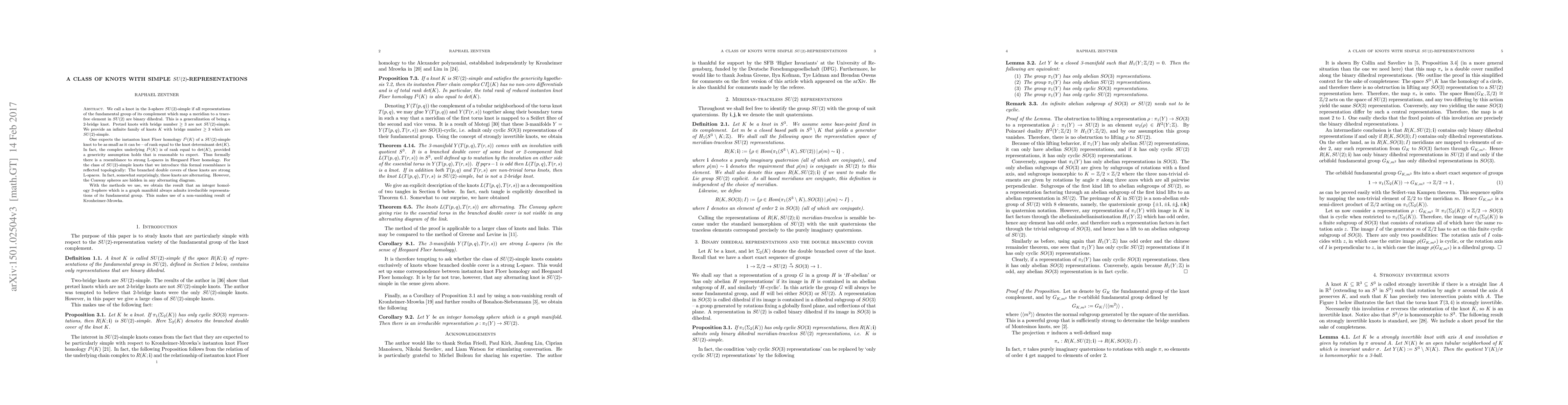 We call a knot in the 3-sphere $SU(2)$-simple if all representations of the fundamental group of its complement which map a meridian to a trace-free element in $SU(2)$ are binary dihedral. This is a generalisation of being a 2-bridge knot. Pretzel knots with bridge number $\geq 3$ are not $SU(2)$-simple. We provide an infinite family of knots $K$ with bridge number $\geq 3$ which are $SU(2)$-simple. One expects the instanton knot Floer homology $I^\natural(K)$ of a $SU(2)$-simple knot to be as small as it can be -- of rank equal to the knot determinant $\det(K)$. In fact, the complex underlying $I^\natural(K)$ is of rank equal to $\det(K)$, provided a genericity assumption holds that is reasonable to expect. Thus formally there is a resemblance to strong L-spaces in Heegaard Floer homology. For the class of $SU(2)$-simple knots that we introduce this formal resemblance is reflected topologically: The branched double covers of these knots are strong L-spaces. In fact, somewhat surprisingly, these knots are alternating. However, the Conway spheres are hidden in any alternating diagram. With the methods we use, we show that an integer homology 3-sphere which is a graph manifold always admits irreducible representations of its fundamental group.