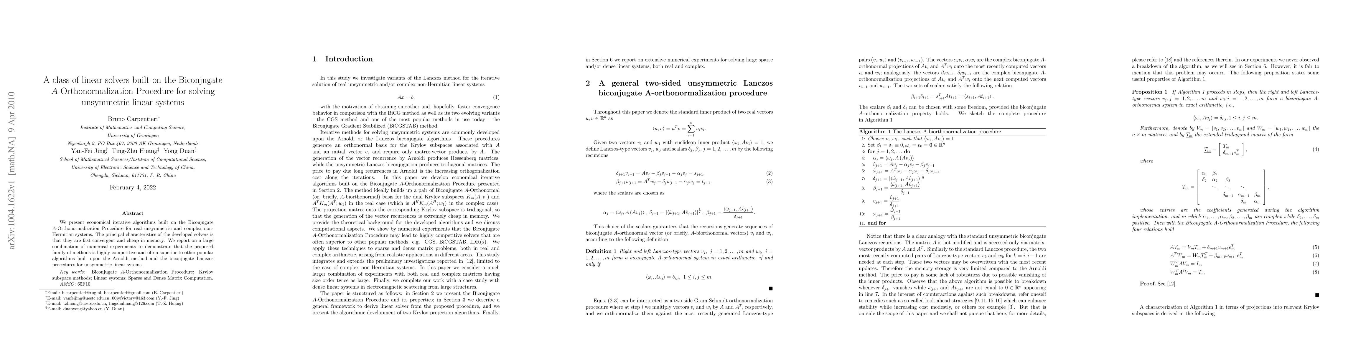 This paper presents a class of fast and memory-efficient linear solvers for unsymmetric systems, outperforming popular algorithms like the Arnoldi method and biconjugate Lanczos procedures in numerical experiments.