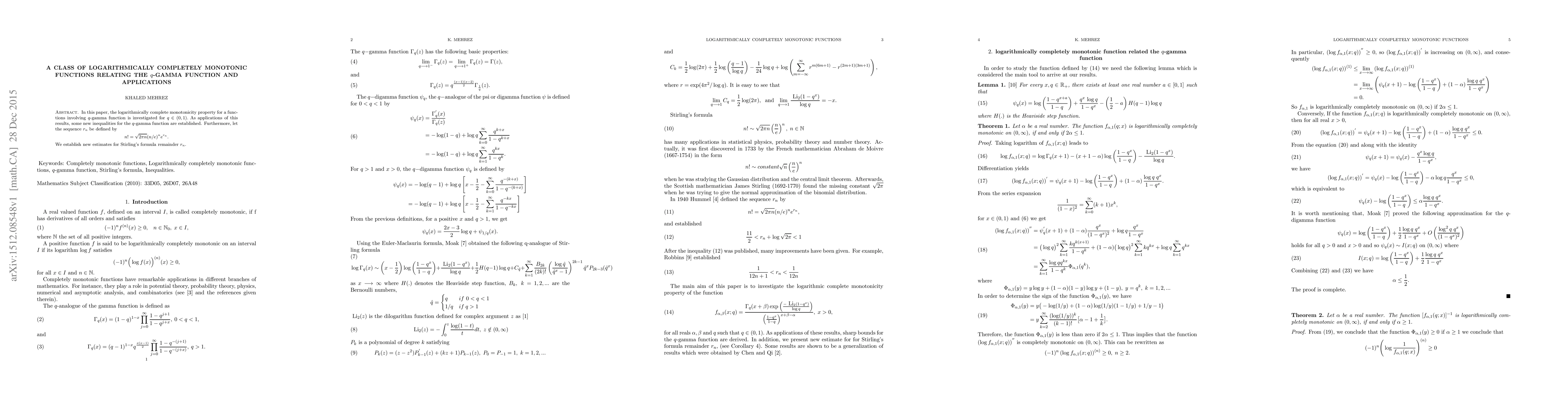 This paper investigates the logarithmically complete monotonicity of functions involving the $q$-gamma function for $q\in(0,1)$, establishing new inequalities for the $q$-gamma function and providing new estimates for the remainder $r_n$ in Stirling's formula.