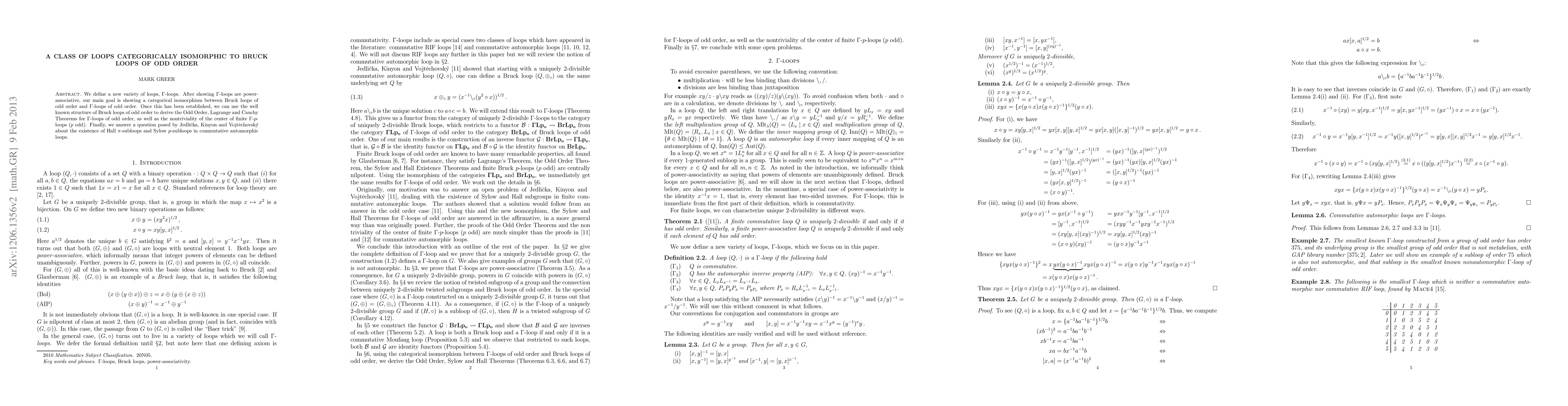 We define a new variety of loops we call $\Gamma$-loops. After showing $\Gamma$-loops are power associative, our main goal will be showing a categorical isomorphism between Bruck loops of odd order and $\Gamma$-loops of odd order. Once this has been established, we can use the well known structure of Bruck loops of odd order to derive the Odd Order, Lagrange and Cauchy Theorems for $\Gamma$-loops of odd order, as well as the nontriviality of the center of finite $\Gamma$-$p$-loops ($p$ odd). Finally, we answer a question posed by Jedli\v{c}ka, Kinyon and Vojt\v{e}chovsk\'{y} about the existence of Hall $\pi$-subloops and Sylow $p$-subloops in commutative automorphic loops. By showing commutative automorphic loops are $\Gamma$-loops and using the categorical isomorphism, we answer in the affirmative.