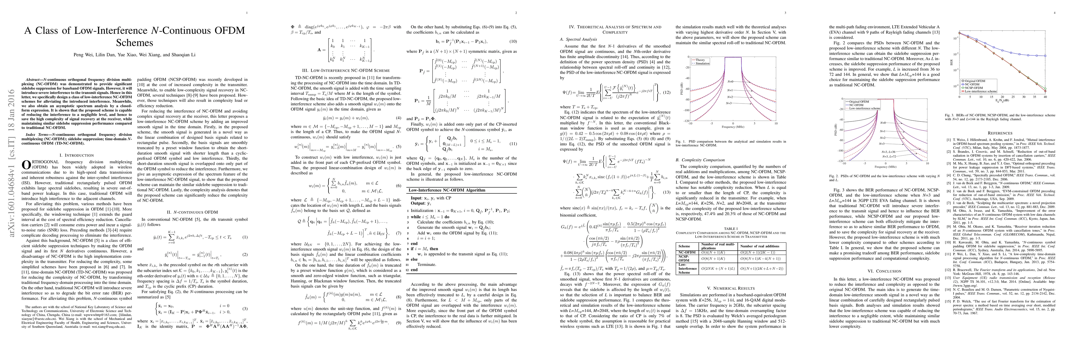 This paper proposes a class of low-interference N-continuous OFDM (NC-OFDM) schemes to mitigate interference while maintaining sidelobe suppression. The authors achieve this by developing an asymptotic spectrum analysis and demonstrate that the new schemes significantly reduce interference to negligible levels, simplifying signal recovery at the receiver.