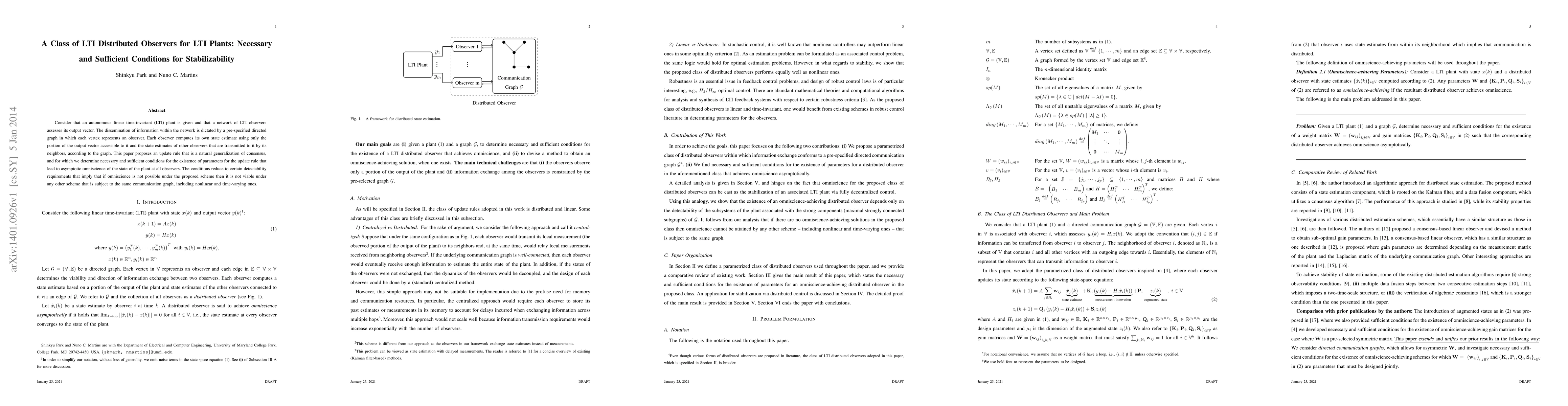 This paper proposes an update rule for a network of LTI observers to estimate the state of an LTI plant, determining necessary and sufficient conditions for stabilizability. The conditions ensure that omniscience is achievable under the proposed scheme, and if not, it is impossible under any other scheme constrained by the same communication graph.