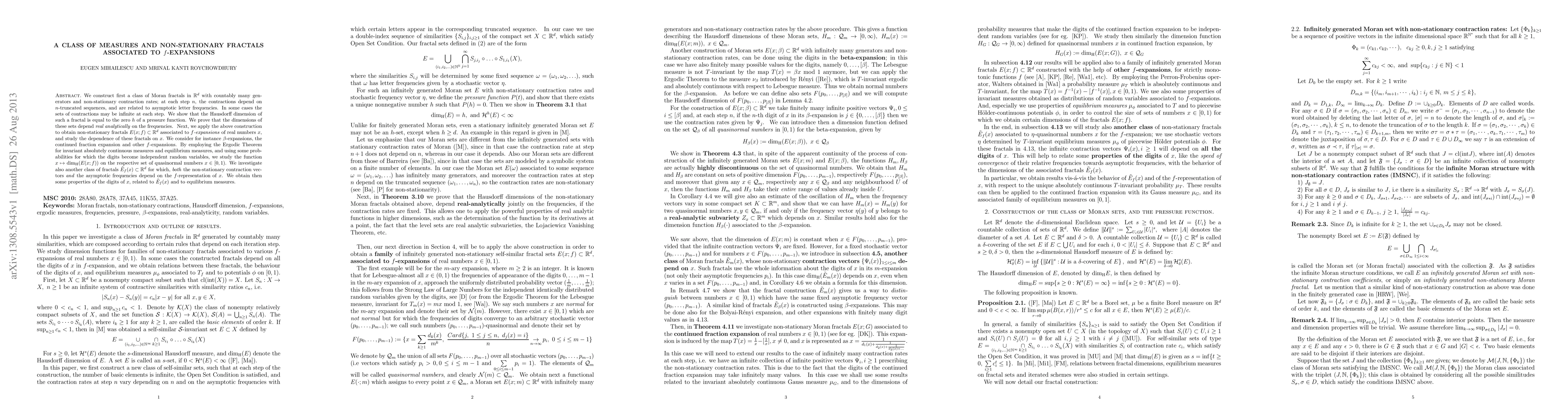 This paper constructs Moran fractals with non-stationary contraction rates based on f-expansions, showing their Hausdorff dimension equals the zero of a pressure function. It studies non-stationary fractals associated with f-expansions, analyzing their dependence on the expansion and properties of their dimensions.