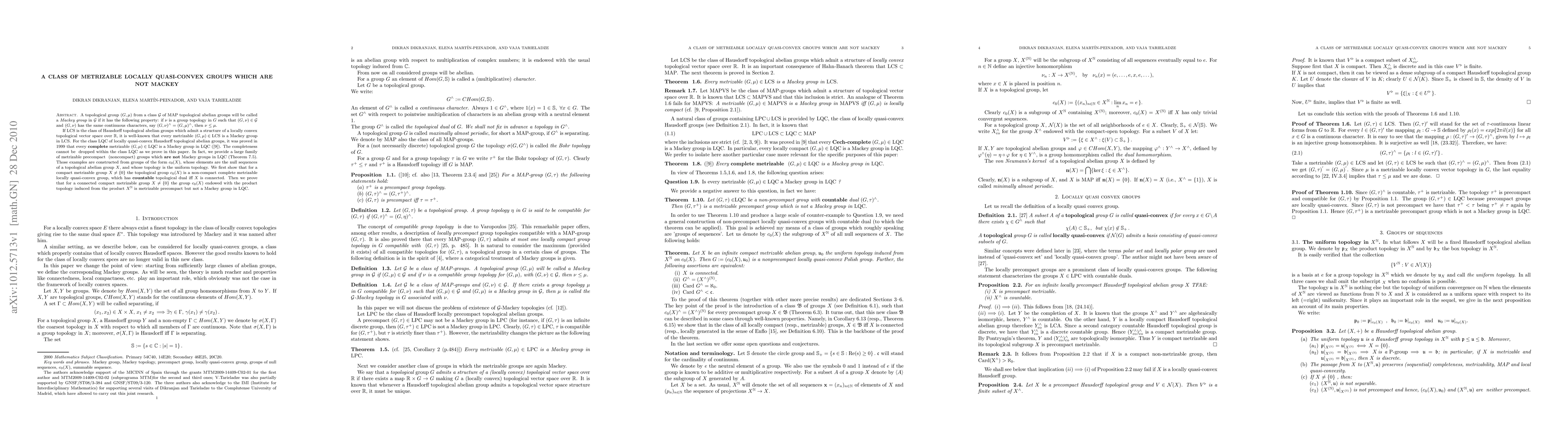 A topological group $(G,\mu)$ from a class $\mathcal G$ of MAP topological abelian groups will be called a {\it Mackey group} in $\mathcal G$ if it has the following property: if $\nu$ is a group topology in $G$ such that $(G,\nu)\in \mathcal G$ and $(G,\nu)$ has the same continuous characters, say $(G,\nu)^{\wedge}=(G,\mu)^{\wedge}$, then $\nu\le \mu$. If $\rm{LCS}$ is the class of Hausdorff topological abelian groups which admit a structure of a locally convex topological vector space over $\mathbb R$, it is well-known that every metrizable $(G,\mu) \in \rm{LCS}$ is a Mackey group in $\rm{LCS}$. For the class $\rm{LQC}$ of locally quasi-convex Hausdorff topological abelian groups, it was proved in 1999 that every {\bf complete} metrizable $(G,\mu)\in \rm{LQC}$ is a Mackey group in $\rm{LQC}$ (\cite{CMPT}). The completeness cannot be \NB dropped within the class $\rm{LQC}$ as we prove in this paper. In fact, we provide a large family of metrizable precompact \NB(noncompact) groups which {\bf are not} Mackey groups in \rm{LQC} (Theorem \ref{basth}). Those examples are constructed from groups of the form $c_0(X)$, whose elements are the null sequences of a topological abelian group $X$, and whose topology is the uniform topology. We first show that for a compact metrizable group $X\ne\{0\}$ the topological group $c_0(X)$ is a non-compact complete metrizable locally quasi-convex group, which has {\bf countable} topological dual iff $X$ is connected. Then we prove that for a connected compact metrizable group $X\ne\{0\}$ the group $c_0(X)$ endowed with the product topology induced from the product $X^{\N}$ is metrizable precompact but not a Mackey group in LQC.