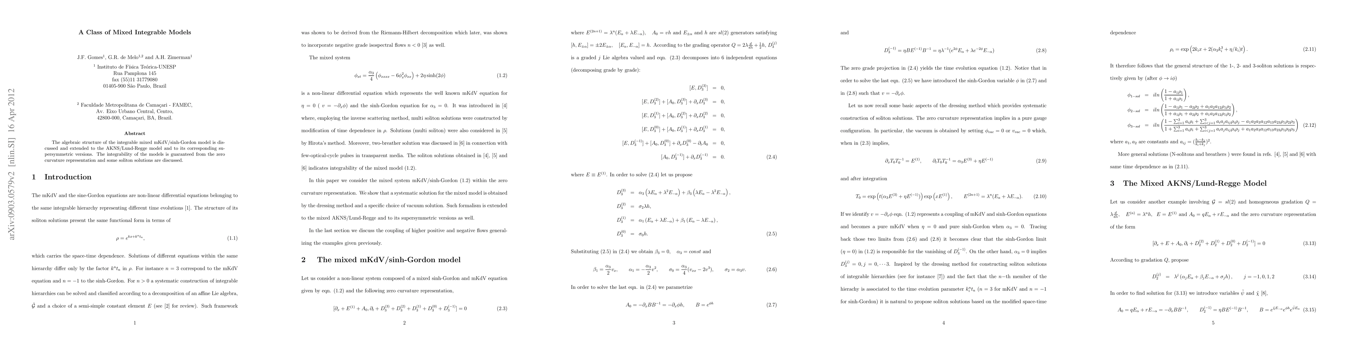 The algebraic structure of the integrable mixed mKdV/sinh-Gordon model is discussed and \textit{}extended to the AKNS/Lund-Regge model and to its corresponding supersymmetric versions. The integrability of the models is guaranteed from the zero curvature representation and some soliton solutions are discussed.
