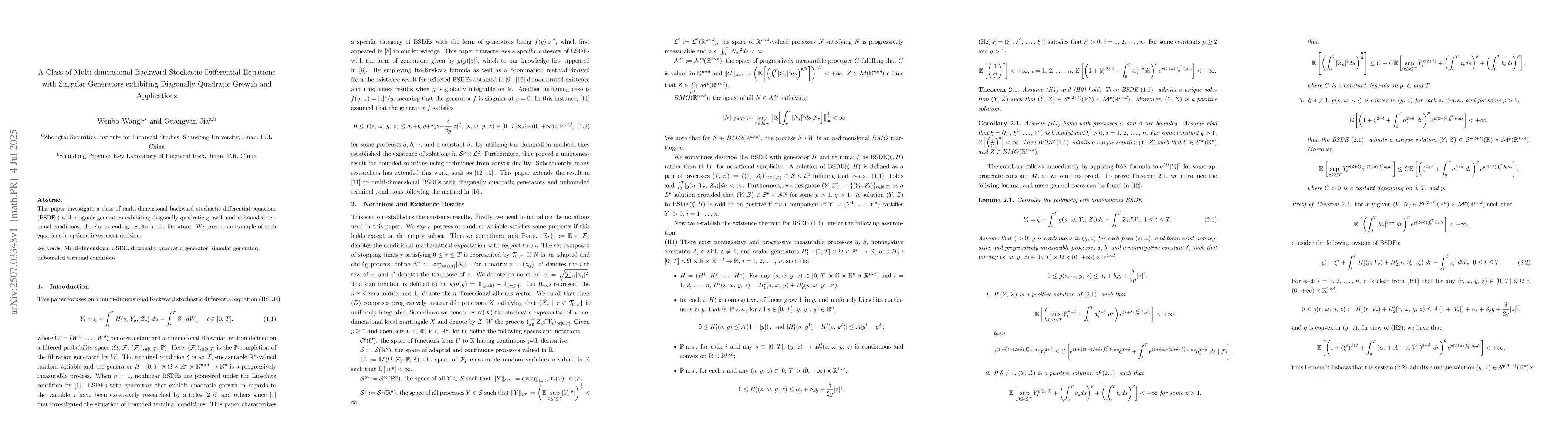 This paper investigate a class of multi-dimensional backward stochastic differential equations (BSDEs) with singualr generators exhibiting diagonally quadratic growth and unbounded terminal conditions, thereby extending results in the literature. We present an example of such equations in optimal investment decision.