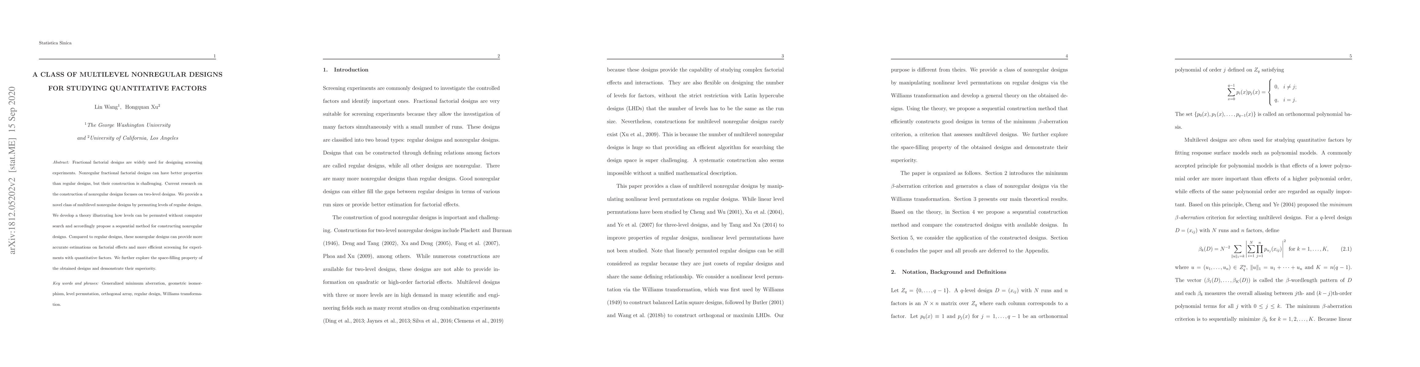 This paper introduces a novel class of multilevel nonregular fractional factorial designs constructed by permuting levels of regular designs, offering more accurate estimations and efficient screening for quantitative factors compared to regular designs. The authors propose a theoretical framework and a sequential method for constructing these designs without extensive computer search, demonstrating their superior space-filling properties.