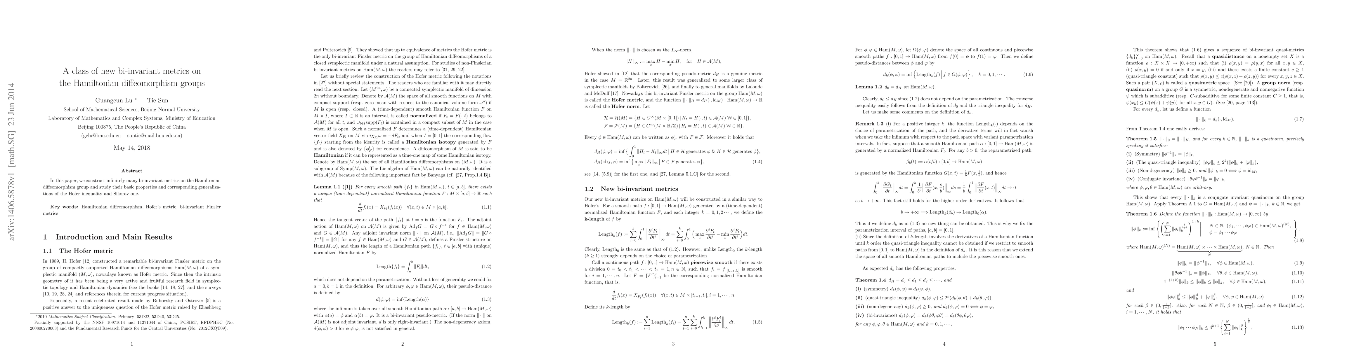 Summary: This paper introduces an infinite set of bi-invariant metrics on Hamiltonian diffeomorphism groups and explores their fundamental properties, including generalized versions of the Hofer and Sikorav inequalities.