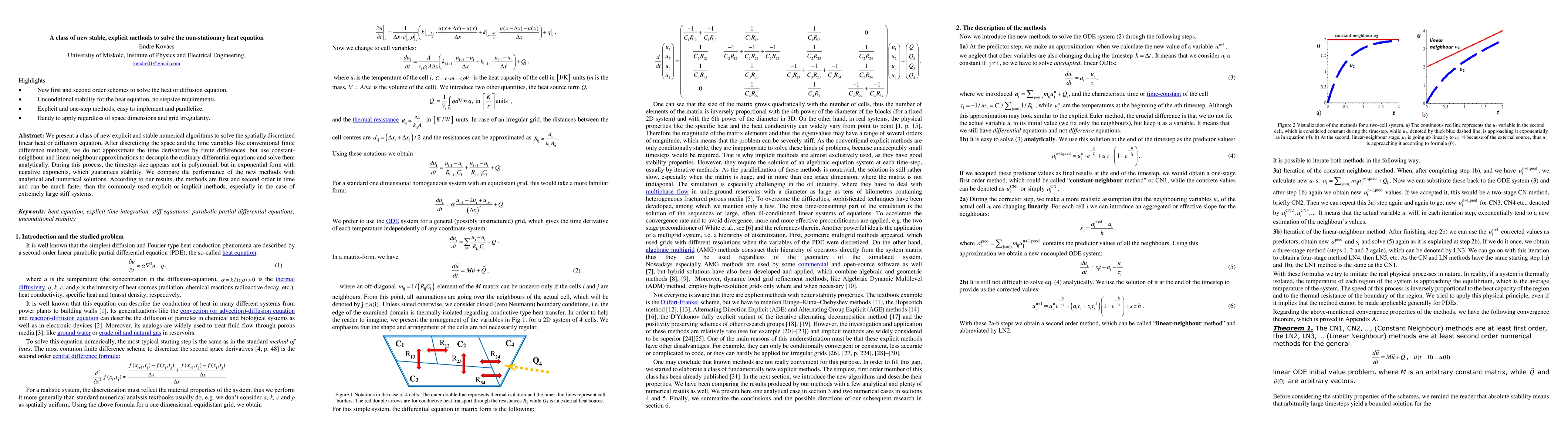 New explicit methods for solving non-stationary heat equations offer first and second order time accuracy and stability, potentially outperforming traditional methods in stiff systems.