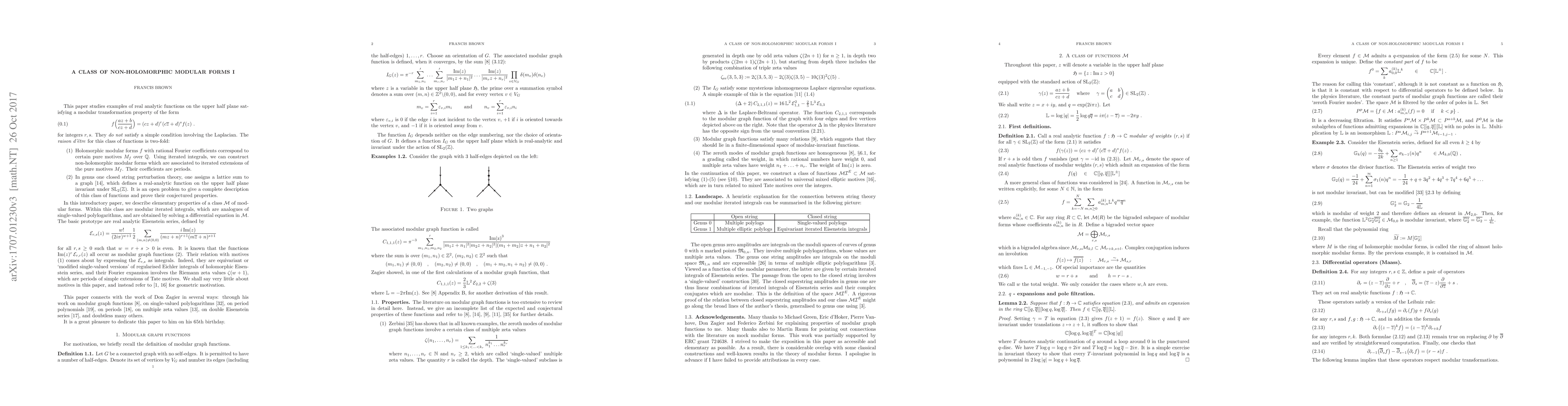 This introductory paper studies a class of real analytic functions on the upper half plane satisfying a certain modular transformation property. They are not eigenfunctions of the Laplacian and are quite distinct from Maass forms. These functions are modular equivariant versions of real and imaginary parts of iterated integrals of holomorphic modular forms, and are modular analogues of single-valued polylogarithms. The coefficients of these functions in a suitable power series expansion are periods. They are related both to mixed motives (iterated extensions of pure motives of classical modular forms), as well as the modular graph functions arising in genus one string perturbation theory. In an appendix, we use weakly holomorphic modular forms to write down modular primitives of cusp forms. Their coefficients involve the full period matrix (periods and quasi-periods) of cusp forms.