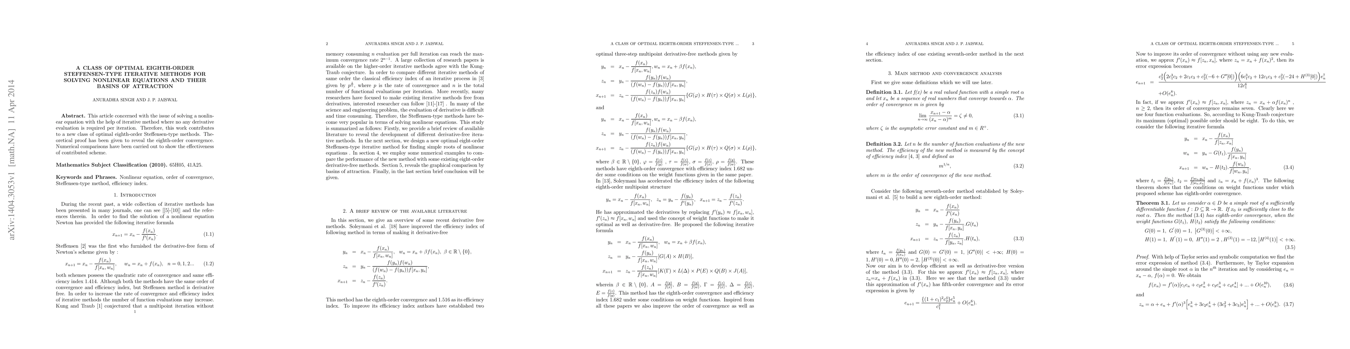 A new class of eighth-order Steffensen-type iterative methods for solving nonlinear equations without derivative evaluation is introduced, with theoretical proof and numerical comparisons showing its effectiveness.