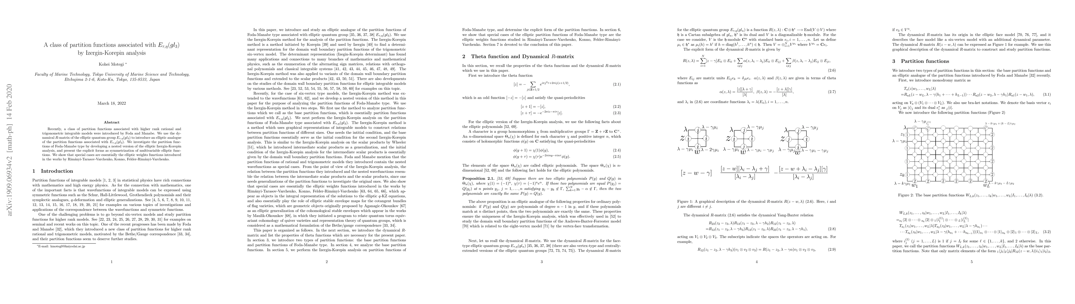 Recently, a class of partition functions associated with higher rank rational and trigonometric integrable models were introduced by Foda and Manabe. We use the dynamical $R$-matrix of the elliptic quantum group $E_{\tau,\eta}(gl_3)$ to introduce an elliptic analogue of the partition functions associated with $E_{\tau,\eta}(gl_3)$. We investigate the partition functions of Foda-Manabe type by developing a nested version of the elliptic Izergin-Korepin analysis, and present the explicit forms as symmetrization of multivariable elliptic functions. We show that special cases are essentially the elliptic weights functions introduced in the works by Rim\'anyi-Tarasov-Varchenko, Konno, Felder-Rim\'anyi-Varchenko.