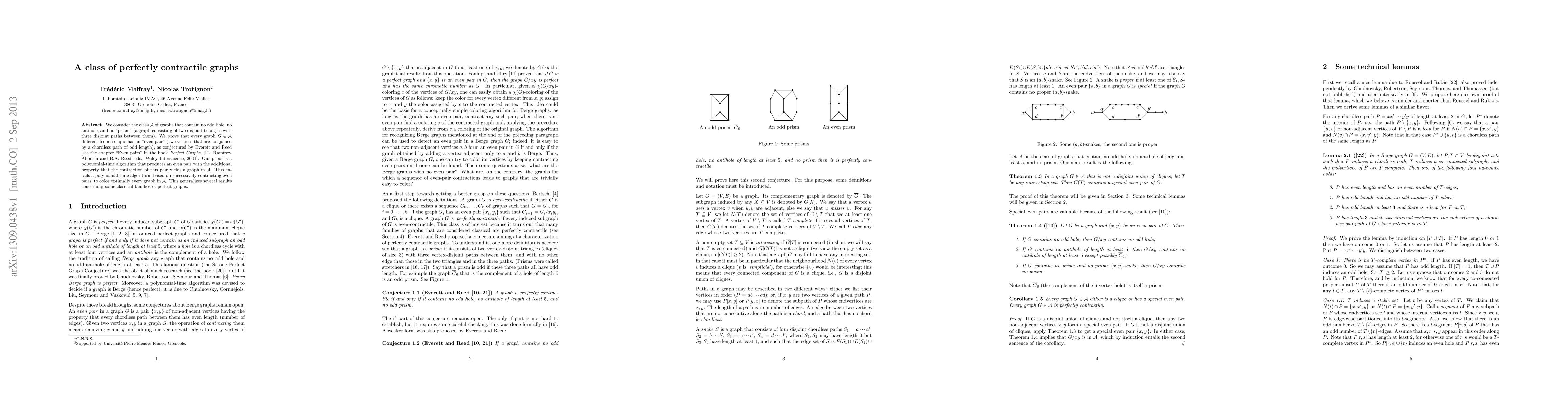 We consider the class ${\cal A}$ of graphs that contain no odd hole, no antihole, and no "prism" (a graph consisting of two disjoint triangles with three disjoint paths between them). We prove that every graph $G\in{\cal A}$ different from a clique has an "even pair" (two vertices that are not joined by a chordless path of odd length), as conjectured by Everett and Reed [see the chapter "Even pairs" in the book {\it Perfect Graphs}, J.L. Ram\'{\i}rez-Alfons\'{\i}n and B.A. Reed, eds., Wiley Interscience, 2001]. Our proof is a polynomial-time algorithm that produces an even pair with the additional property that the contraction of this pair yields a graph in ${\cal A}$. This entails a polynomial-time algorithm, based on successively contracting even pairs, to color optimally every graph in ${\cal A}$. This generalizes several results concerning some classical families of perfect graphs.