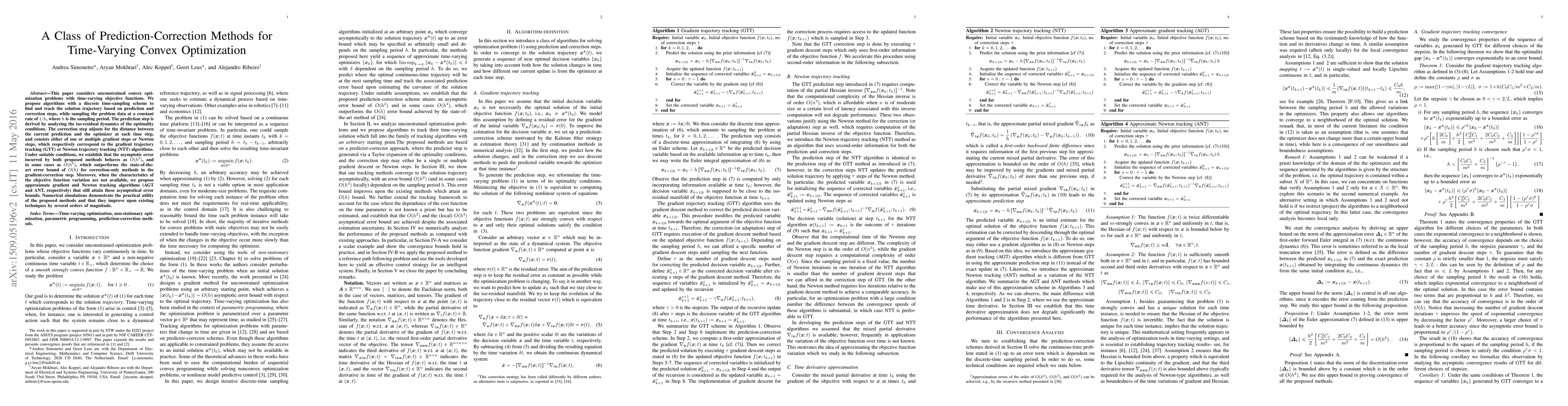 This paper proposes prediction-correction algorithms for time-varying convex optimization, achieving error bounds of $O(h^2)$ or $O(h^4)$ and outperforming existing methods. Numerical simulations show significant improvements over current techniques.