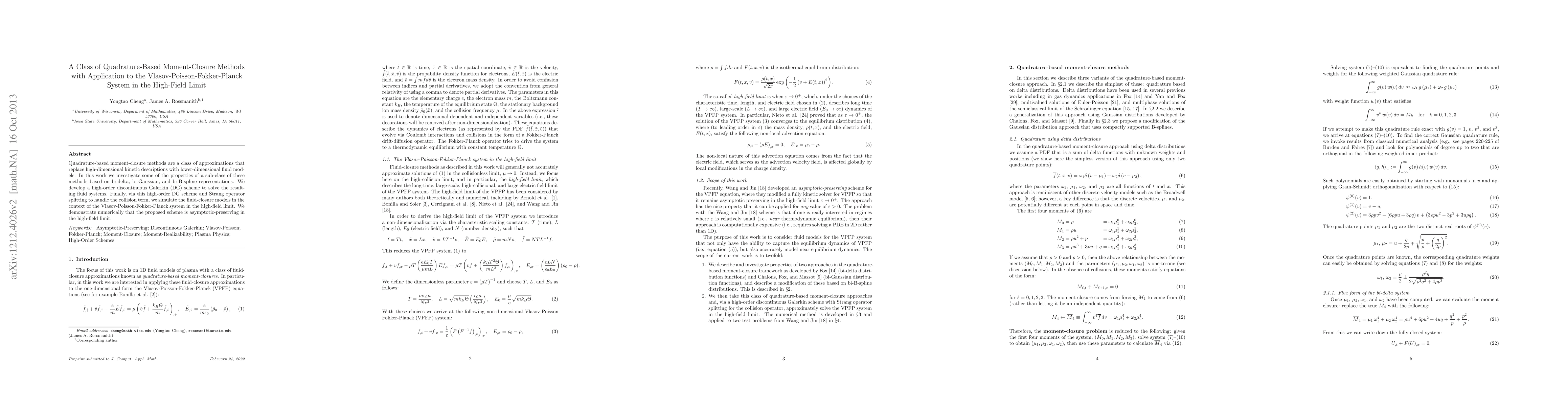 This paper proposes quadrature-based moment-closure methods for simplifying high-dimensional kinetic models into lower-dimensional fluid systems. It develops a high-order discontinuous Galerkin scheme to solve the resulting fluid models, demonstrating asymptotic-preserving properties for the Vlasov-Poisson-Fokker-Planck system in the high-field limit.