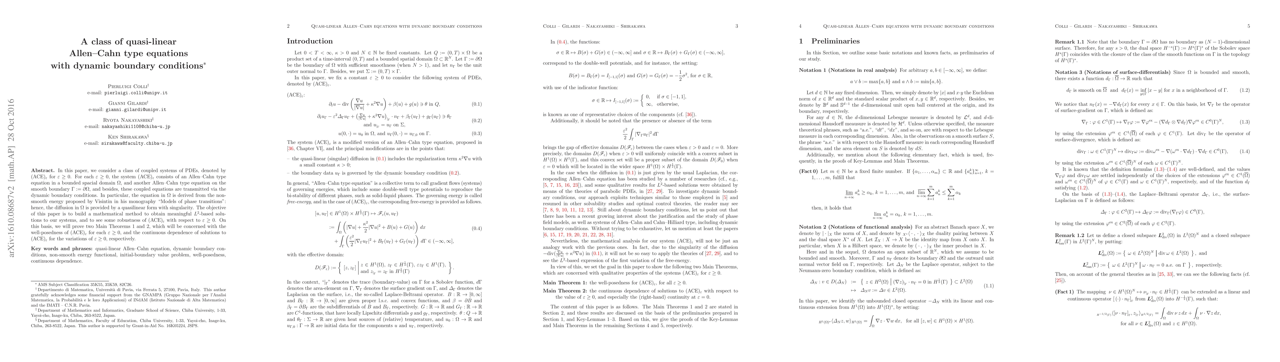 In this paper, we consider a class of coupled systems of PDEs, denoted by (ACE)$_{\varepsilon}$ for $ \varepsilon \geq 0 $. For each $ \varepsilon \geq 0 $, the system (ACE)$_{\varepsilon}$ consists of an Allen-Cahn type equation in a bounded spacial domain $ \Omega $, and another Allen-Cahn type equation on the smooth boundary $ \Gamma := \partial \Omega $, and besides, these coupled equations are transmitted via the dynamic boundary conditions. In particular, the equation in $ \Omega $ is derived from the non-smooth energy proposed by Visintin in his monography "Models of phase transitions": hence, the diffusion in $ \Omega $ is provided by a quasilinear form with singularity. The objective of this paper is to build a mathematical method to obtain meaningful $ L^2 $-based solutions to our systems, and to see some robustness of (ACE)$_\varepsilon$ with respect to $ \varepsilon \geq 0 $. On this basis, we will prove two Main Theorems 1 and 2, which will be concerned with the well-posedness of (ACE)$_\varepsilon$ for each $ \varepsilon \geq 0 $, and the continuous dependence of solutions to (ACE)$_\varepsilon$ for the variations of $ \varepsilon \geq 0 $, respectively.
