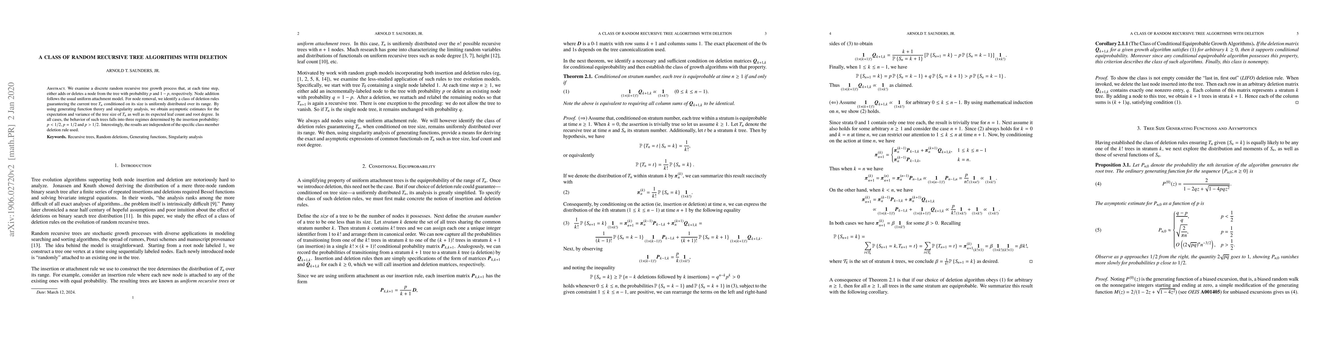 This paper studies random recursive tree algorithms that alternate between adding and deleting nodes, identifying a class of deletion rules that maintains uniform distribution of tree sizes. Asymptotic estimates for tree size, leaf count, and root degree are derived, revealing three distinct regimes based on the insertion probability $p$.