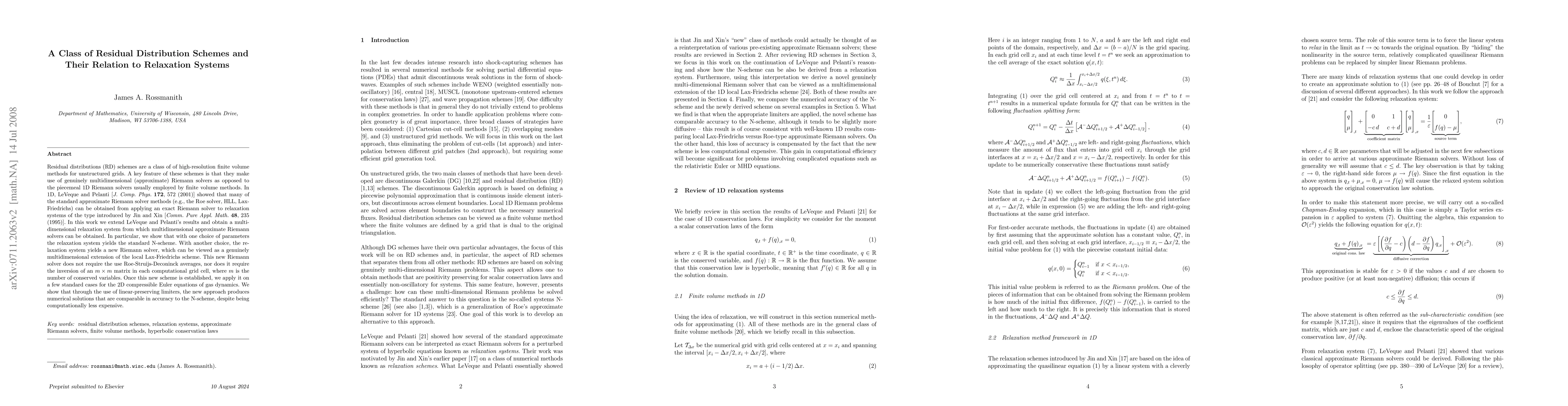 This paper develops a class of residual distribution schemes for high-resolution finite volume methods on unstructured grids, utilizing genuinely multidimensional Riemann solvers. It extends previous results to derive a multidimensional relaxation system that yields both the standard N-scheme and a new, more efficient Riemann solver, which performs comparably to the N-scheme but with lower computational cost.