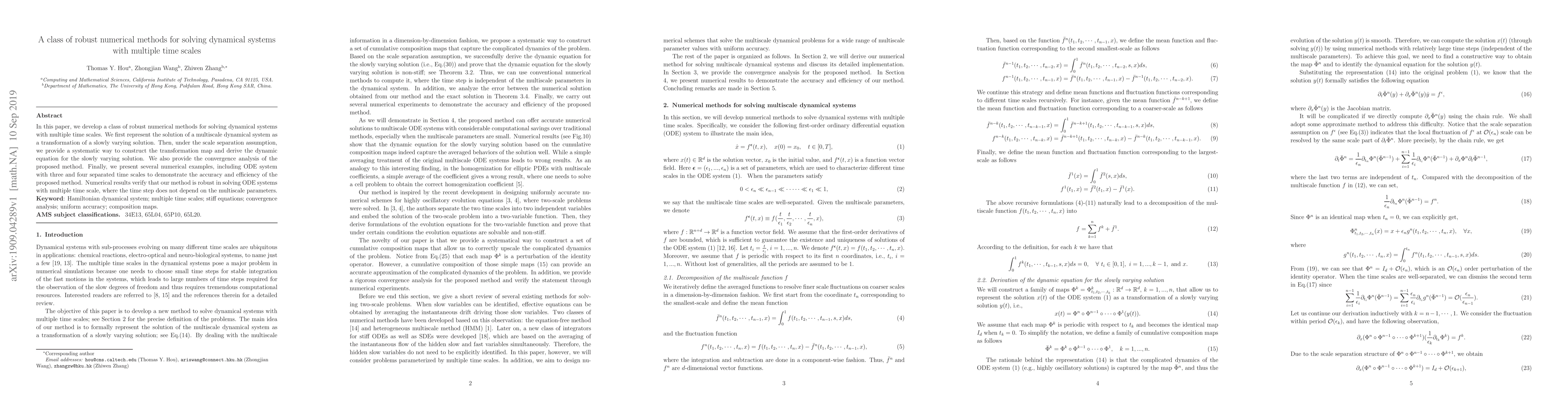 In this paper, we develop a class of robust numerical methods for solving dynamical systems with multiple time scales. We first represent the solution of a multiscale dynamical system as a transformation of a slowly varying solution. Then, under the scale separation assumption, we provide a systematic way to construct the transformation map and derive the dynamic equation for the slowly varying solution. We also provide the convergence analysis of the proposed method. Finally, we present several numerical examples, including ODE system with three and four separated time scales to demonstrate the accuracy and efficiency of the proposed method. Numerical results verify that our method is robust in solving ODE systems with multiple time scale, where the time step does not depend on the multiscale parameters.
