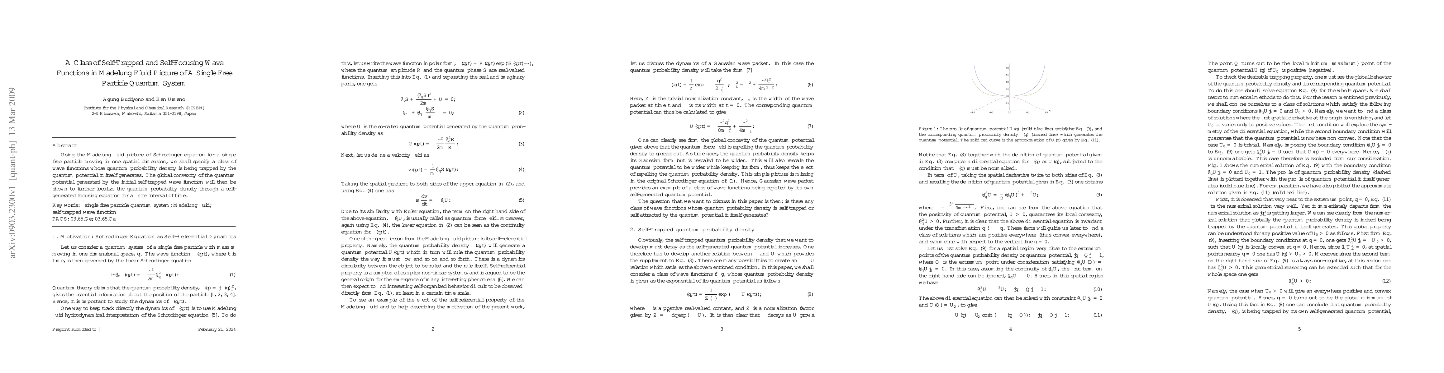 Using the Madelung fluid picture of Schr\"odinger equation for a single free particle moving in one spatial dimension, we shall specify a class of wave functions whose quantum probability density is being trapped by the quantum potential it itself generates. The global convexity of the quantum potential generated by the initial self-trapped wave function will then be shown to further localize the quantum probability density through a self-generated focusing equation for a finite interval of time.
