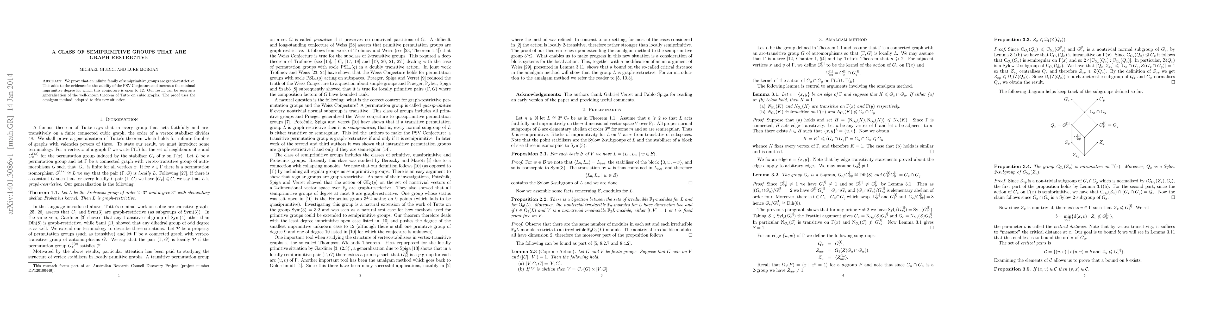 The paper proves that an infinite family of semiprimitive groups are graph-restrictive, supporting the PSV Conjecture and raising the minimal imprimitive degree to 12. The proof employs the amalgam method adapted to this context, extending Tutte's theorem on cubic graphs.