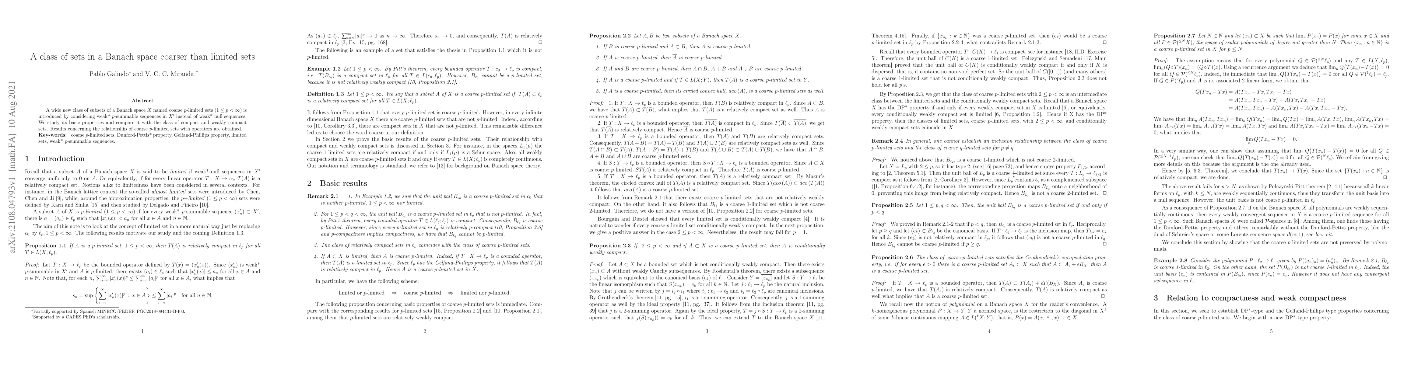 The paper introduces a new class of coarse $p$-limited sets in Banach spaces based on weak* $p$-summable sequences and explores their properties compared to compact and weakly compact sets, along with their relation to operators.