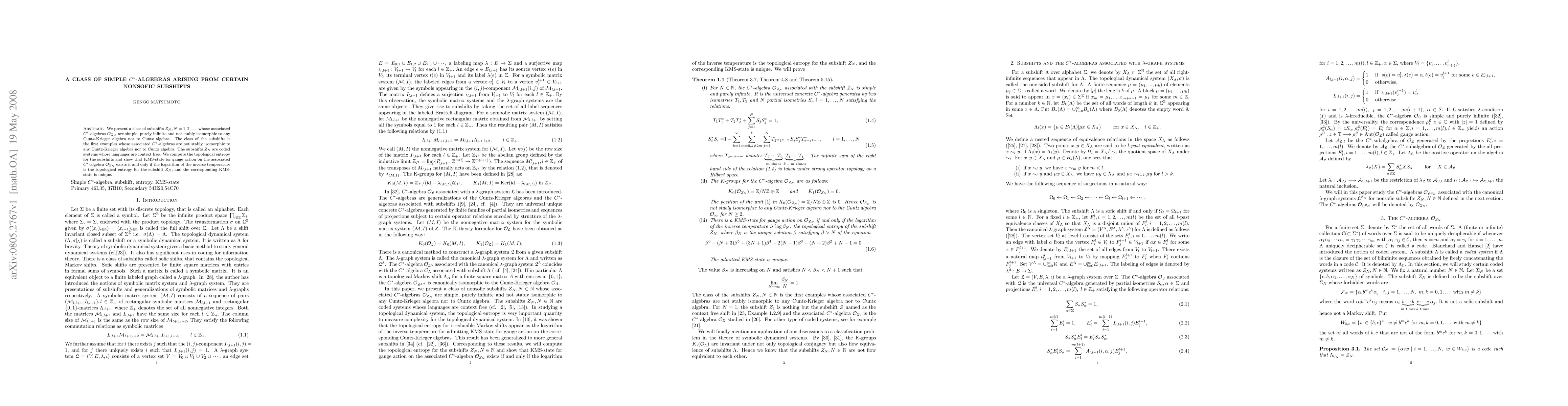 We present a class of subshifts $Z_N, N = 1,2,...$ whose associated $C^*$-algebras ${\cal O}_{Z_N}$ are simple, purely infinite and not stably isomorphic to any Cuntz-Krieger algebra nor to Cuntz algebra. The class of the subshifts is the first examples whose associated $C^*$-algebras are not stably isomorphic to any Cuntz-Krieger algebra nor to Cuntz algebra. The subshifts $Z_N$ are coded systems whose languages are context free. We compute the topological entropy for the subshifts and show that KMS-state for gauge action on the associated $C^*$-algebra ${\cal O}_{Z_N}$ exists if and only if the logarithm of the inverse temperature is the topological entropy for the subshift $Z_N$, and the corresponding KMS-state is unique.