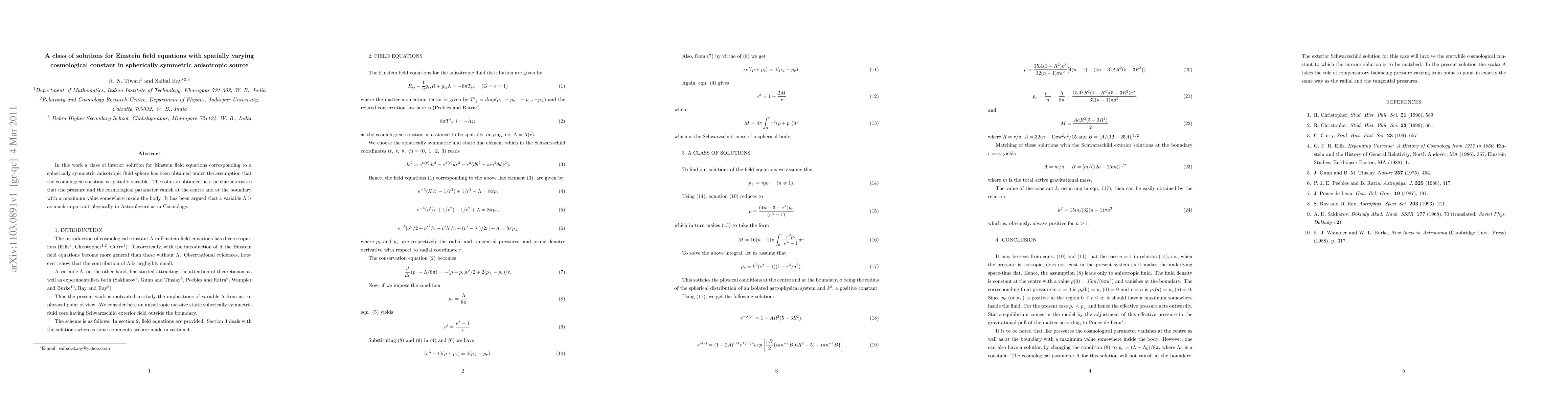 This paper presents a class of solutions to Einstein field equations for spherically symmetric anisotropic fluid spheres with a spatially varying cosmological constant. The derived solution features pressures and cosmological parameters vanishing at the center and boundary, with a peak value inside.