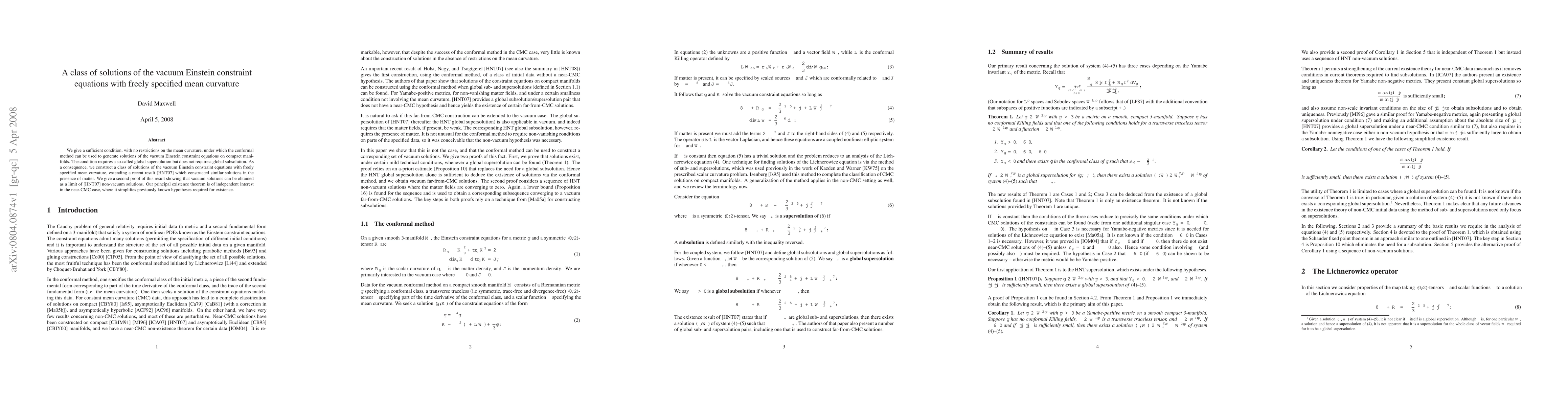 We give a sufficient condition, with no restrictions on the mean curvature, under which the conformal method can be used to generate solutions of the vacuum Einstein constraint equations on compact manifolds. The condition requires a so-called global supersolution but does not require a global subsolution. As a consequence, we construct a class of solutions of the vacuum Einstein constraint equations with freely specified mean curvature, extending a recent result of Holst, Nagy, and Tsogtgerel [HNT07] which constructed similar solutions in the presence of matter. We give a second proof of this result showing that vacuum solutions can be obtained as a limit of [HNT07] non-vacuum solutions. Our principal existence theorem is of independent interest in the near-CMC case, where it simplifies previously known hypotheses required for existence.