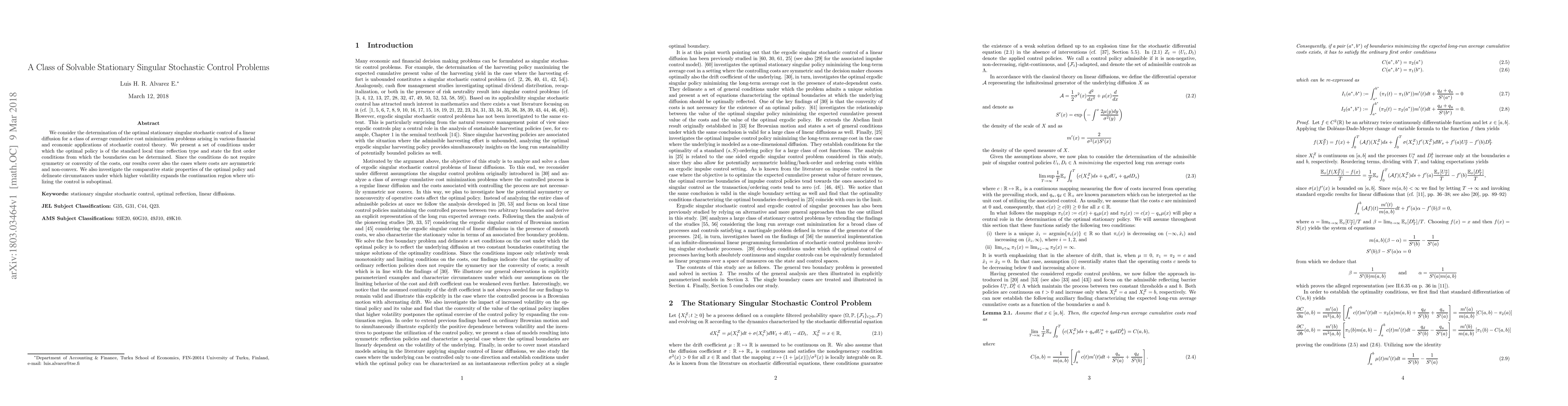 This paper determines optimal stationary singular stochastic control for linear diffusions in financial and economic applications, presenting conditions for a local time reflection type policy. It also explores comparative statics and the impact of volatility on control utilization, without requiring symmetry or convexity of costs.