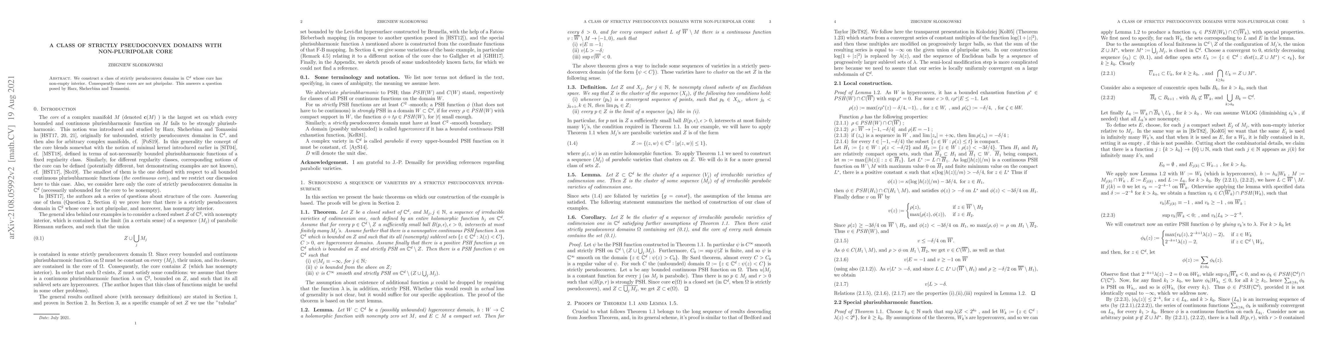 We construct a class of strictly pseudoconvex domains in Cdwhose core has non-empty interior. Consequently these cores are not pluripolar. This answers a question posed by Harz, Shcherbina and Tomassini.