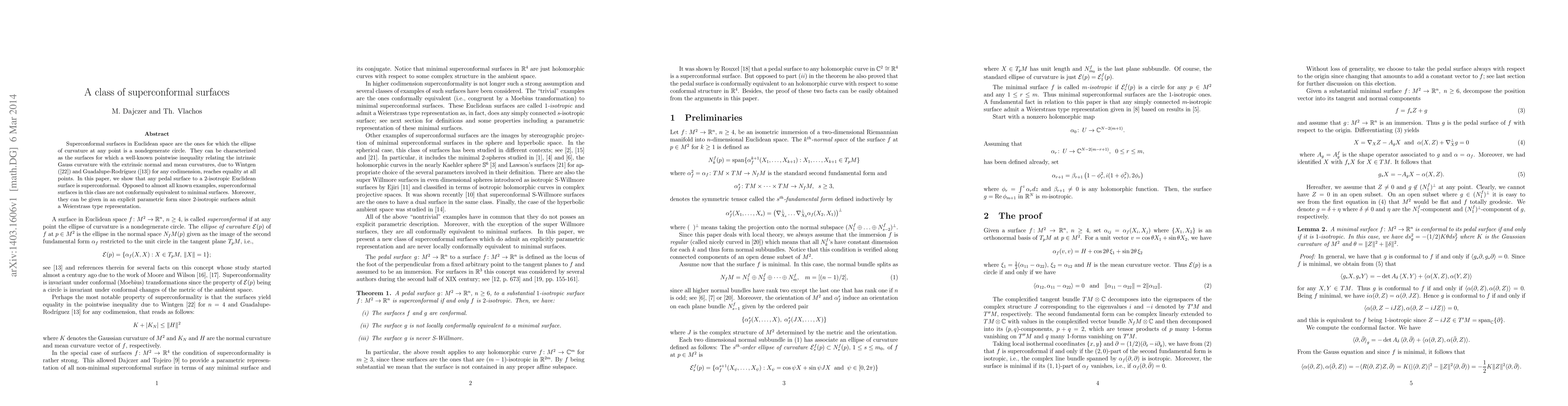 Researchers show that 2-isotropic Euclidean surfaces' pedal surfaces are superconformal, a property not found in most known examples, and can be expressed in an explicit parametric form.