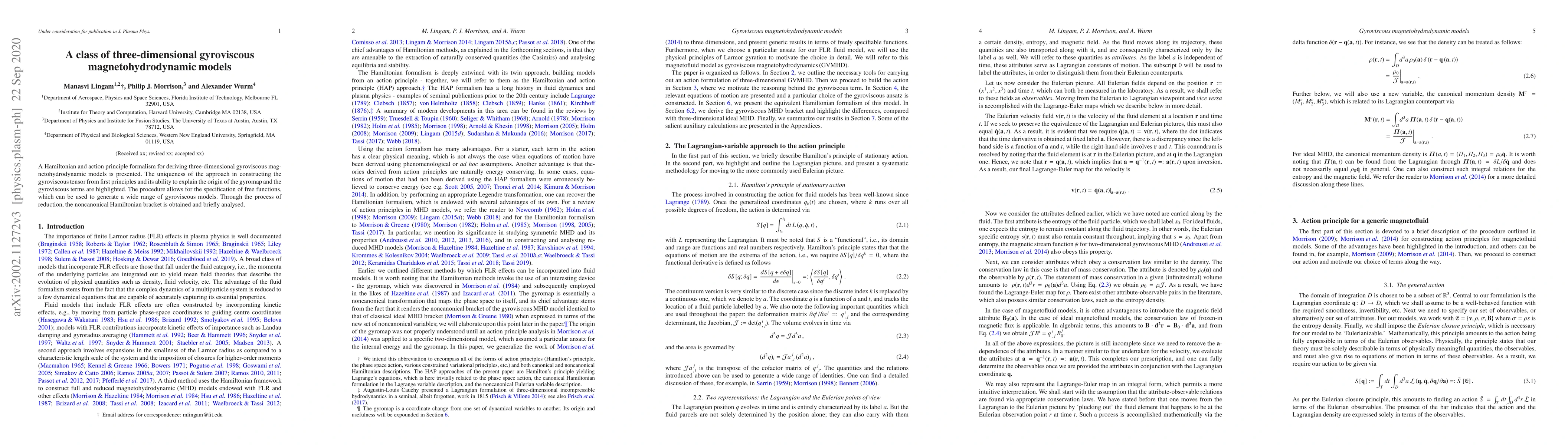 This paper introduces a Hamiltonian and action principle formalism for developing three-dimensional gyroviscous magnetohydrodynamic models, emphasizing the unique construction of the gyroviscous tensor and its ability to explain gyroscopic effects, while allowing for the specification of free functions to generate diverse gyroviscous models. The noncanonical Hamiltonian bracket is derived and briefly analyzed.