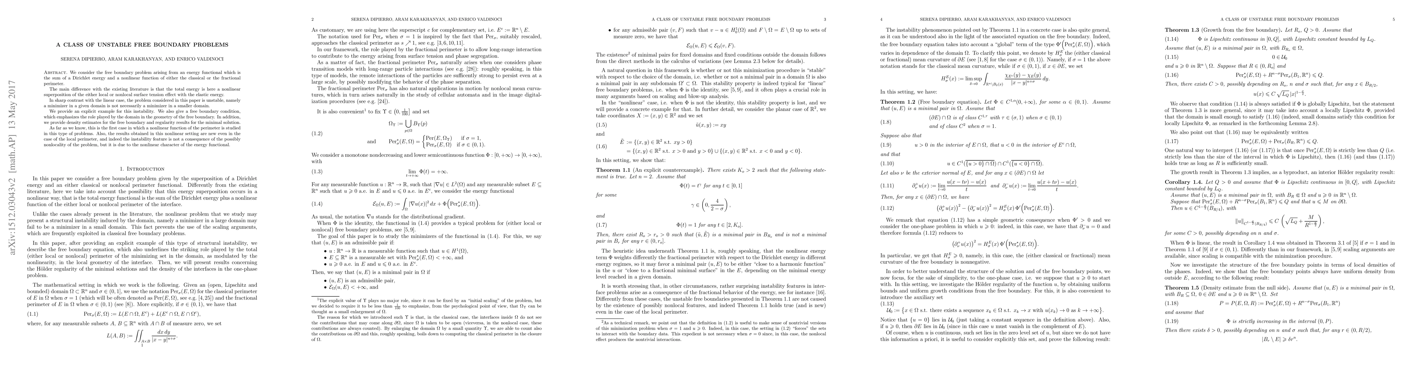 We consider the free boundary problem arising from an energy functional which is the sum of a Dirichlet energy and a nonlinear function of either the classical or the fractional perimeter. The main difference with the existing literature is that the total energy is here a nonlinear superposition of the either local or nonlocal surface tension effect with the elastic energy. In sharp contrast with the linear case, the problem considered in this paper is unstable, namely a minimizer in a given domain is not necessarily a minimizer in a smaller domain. We provide an explicit example for this instability. We also give a free boundary condition, which emphasizes the role played by the domain in the geometry of the free boundary. In addition, we provide density estimates for the free boundary and regularity results for the minimal solution. As far as we know, this is the first case in which a nonlinear function of the perimeter is studied in this type of problems. Also, the results obtained in this nonlinear setting are new even in the case of the local perimeter, and indeed the instability feature is not a consequence of the possibly nonlocality of the problem, but it is due to the nonlinear character of the energy functional.