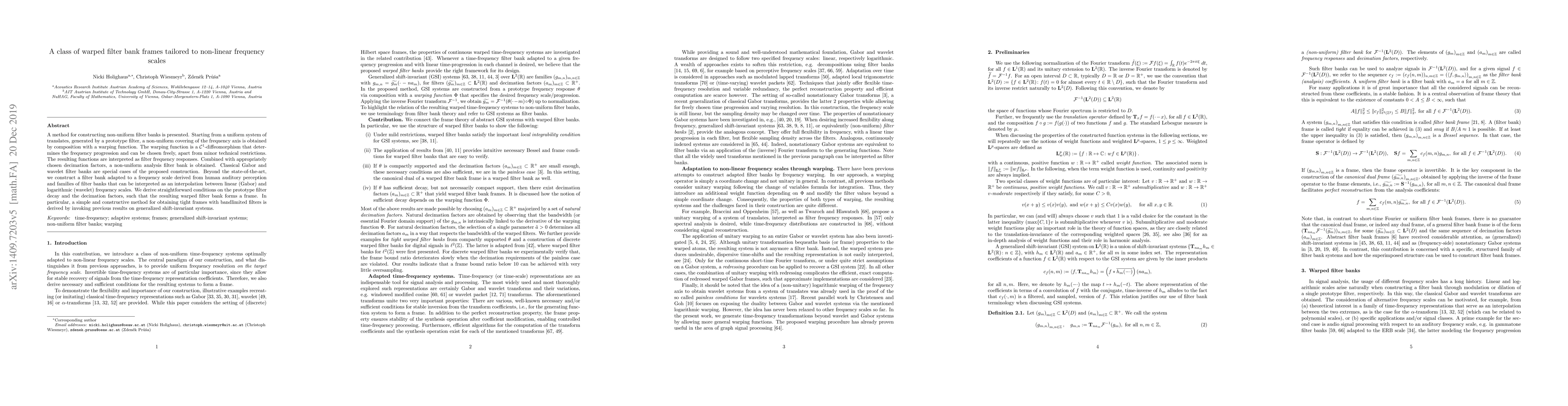 This paper presents a method for constructing non-uniform filter banks using a warping function to achieve a non-uniform frequency coverage, tailored to non-linear frequency scales. The proposed construction generalizes classical Gabor and wavelet filter banks, and includes a filter bank adapted to human auditory perception.