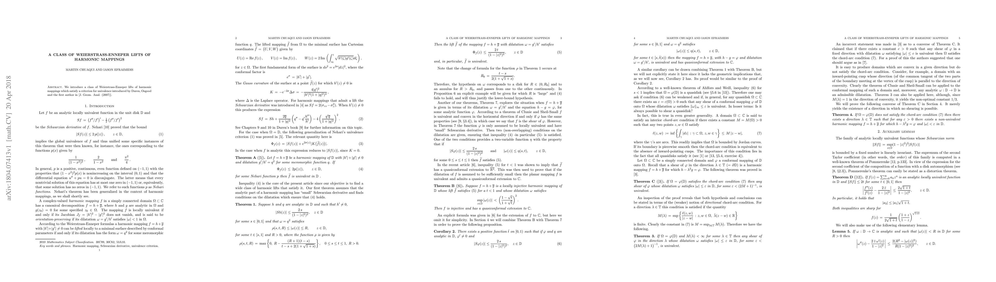 Researchers introduce a class of Weierstrass-Enneper lifts of harmonic mappings that satisfy a univalence criterion, expanding the understanding of harmonic mappings in complex analysis.