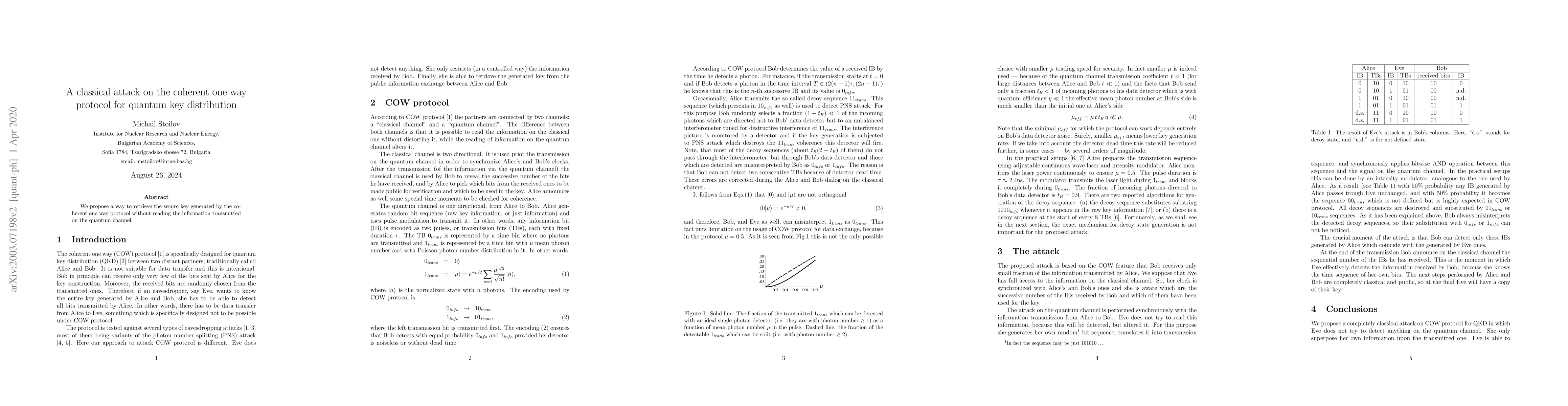 Summary: This paper presents a classical attack method to extract the secure key generated by the coherent one way protocol for quantum key distribution, without intercepting the quantum channel's information. The attack exploits the protocol's inherent vulnerabilities.