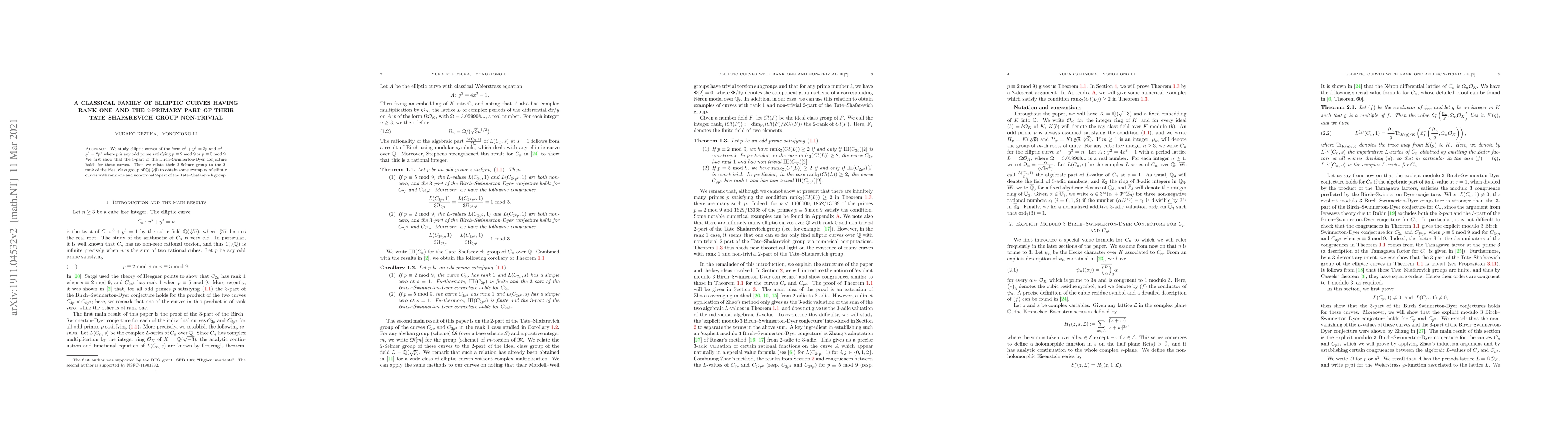 We study elliptic curves of the form $x^3+y^3=2p$ and $x^3+y^3=2p^2$ where $p$ is any odd prime satisfying $p\equiv 2\bmod 9$ or $p\equiv 5\bmod 9$. We first show that the $3$-part of the Birch-Swinnerton-Dyer conjecture holds for these curves. Then we relate their $2$-Selmer group to the $2$-rank of the ideal class group of $\mathbb{Q}(\sqrt[3]{p})$ to obtain some examples of elliptic curves with rank one and non-trivial $2$-part of the Tate-Shafarevich group.