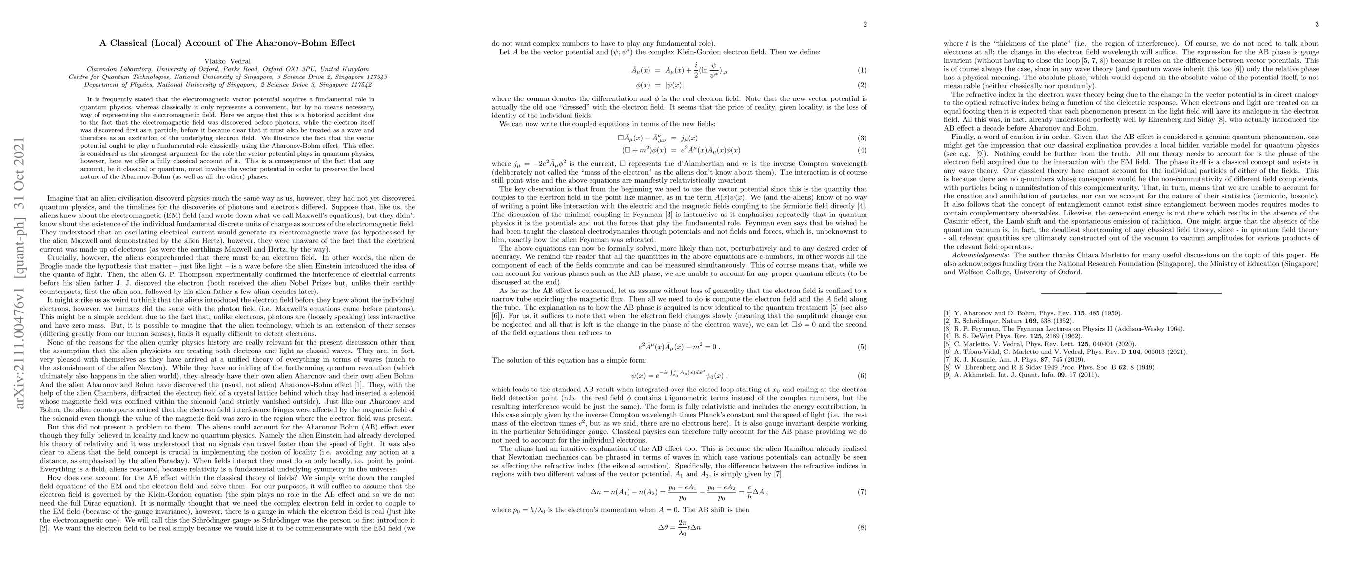 Researchers argue that the electromagnetic vector potential plays a fundamental role in physics classically, using the Aharonov-Bohm effect as an example to challenge its quantum origins.