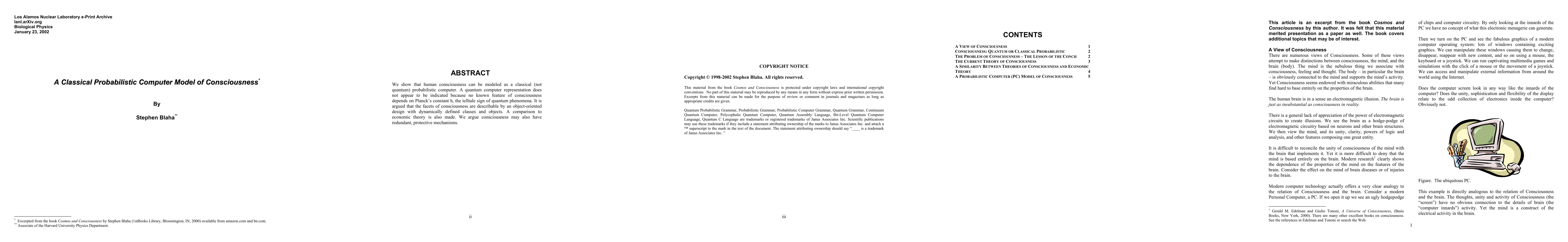 Researchers propose a classical probabilistic computer model to describe human consciousness, arguing that quantum phenomena don't underlie its workings and suggesting redundancy as a protective mechanism.
