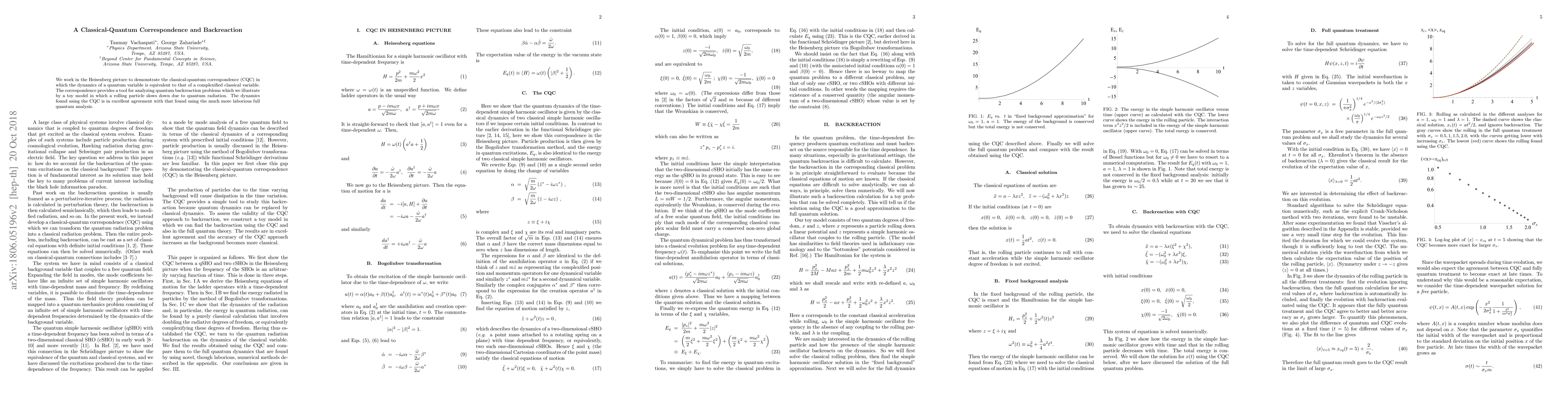 We work in the Heisenberg picture to demonstrate the classical-quantum correspondence (CQC) in which the dynamics of a quantum variable is equivalent to that of a complexified classical variable. The correspondence provides a tool for analyzing quantum backreaction problems which we illustrate by a toy model in which a rolling particle slows down due to quantum radiation. The dynamics found using the CQC is in excellent agreement with that found using the much more laborious full quantum analysis.
