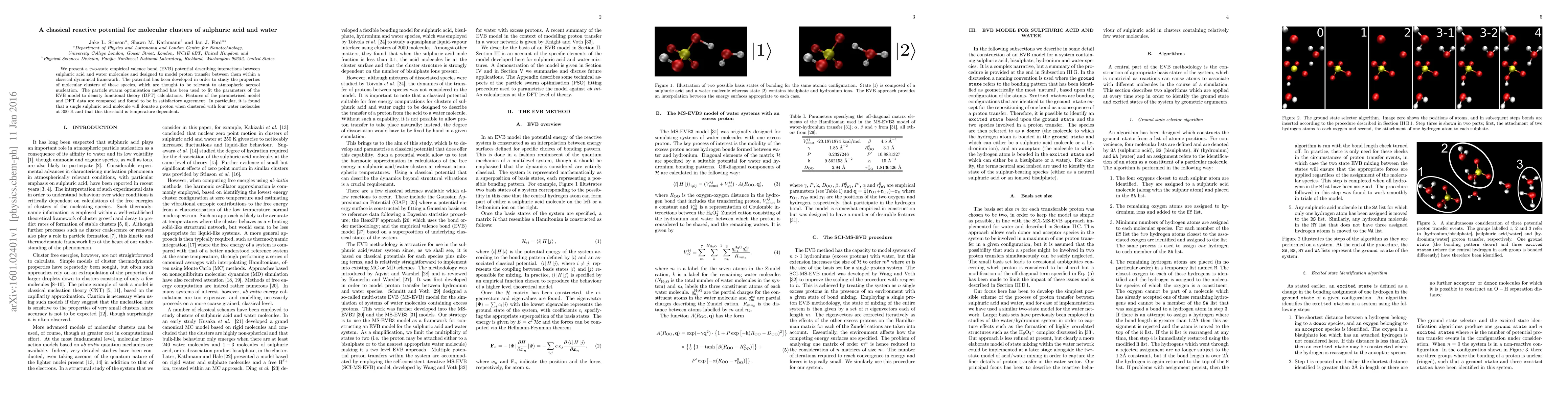 This paper introduces an empirical valence bond potential to model proton transfer interactions between sulphuric acid and water molecules, aiming to study atmospheric aerosol nucleation. The potential parameters were fitted using particle swarm optimization and compared to density functional theory calculations, showing satisfactory agreement and identifying a proton donation threshold from sulphuric acid to four water molecules at 300 K.