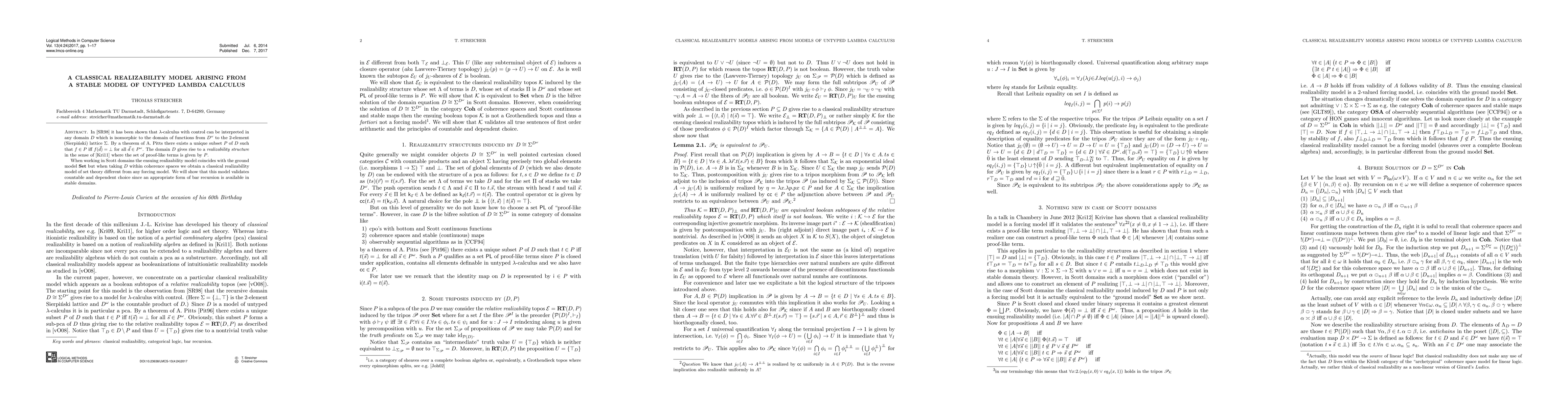 Summary: This paper introduces a classical realizability model derived from untyped lambda calculus within coherence spaces, demonstrating its ability to validate countable choice through bar recursion and induction.