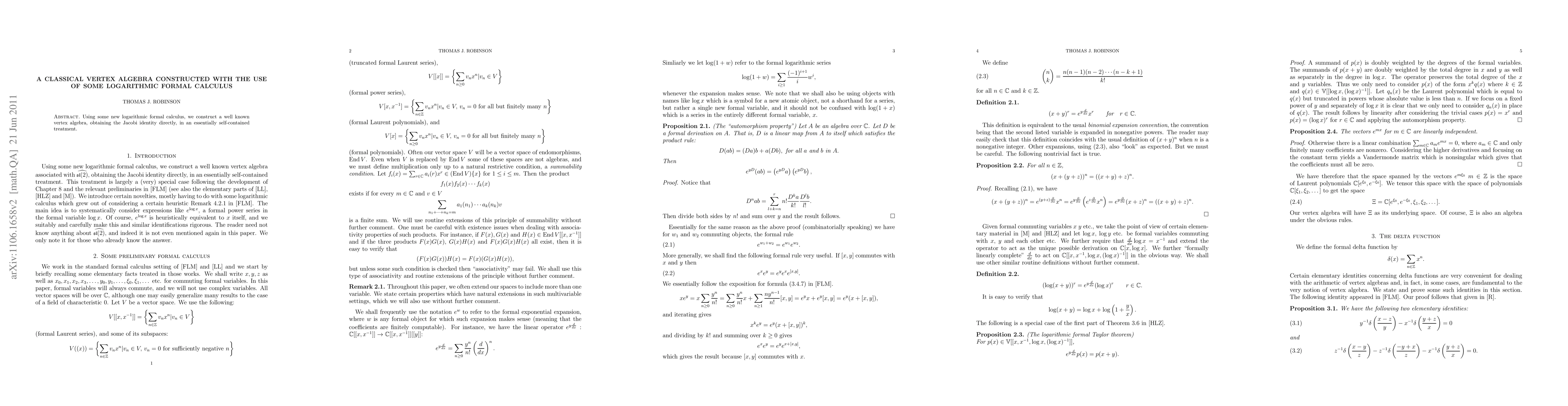 Using some new logarithmic formal calculus, we construct a well known vertex algebra, obtaining the Jacobi identity directly, in an essentially self-contained treatment.