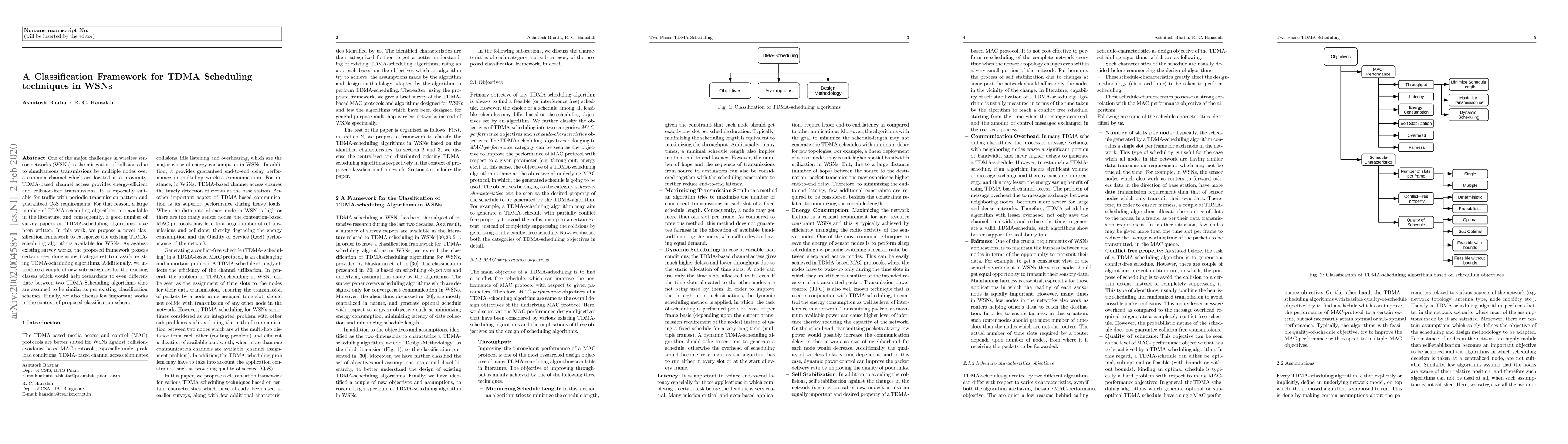 One of the major challenges in wireless sensor networks (WSNs) is the mitigation of collisions due to simultaneous transmissions by multiple nodes over a common channel which are located in a proximity. TDMA-based channel access provides energy-efficient and collision-free transmissions. It is especially suitable for traffic with periodic transmission patterns and guaranteed QoS requirements. For that reason, a large number of TDMA-scheduling algorithms are available in the literature, and consequently, a good number of survey papers on TDMA-scheduling algorithms have been written. In this work, we propose a novel classification framework to categorize the existing TDMA-scheduling algorithms available for WSNs. As against existing survey works, the proposed framework possess certain new dimensions (categories) to classify existing TDMA-scheduling algorithms. Additionally, we introduce a couple of new sub-categories for the existing classes which would help researchers to even differentiate between two TDMA-Scheduling algorithms that are assumed to be similar as per existing classification schemes. Finally, we also discuss few important works in the context of proposed classification scheme.