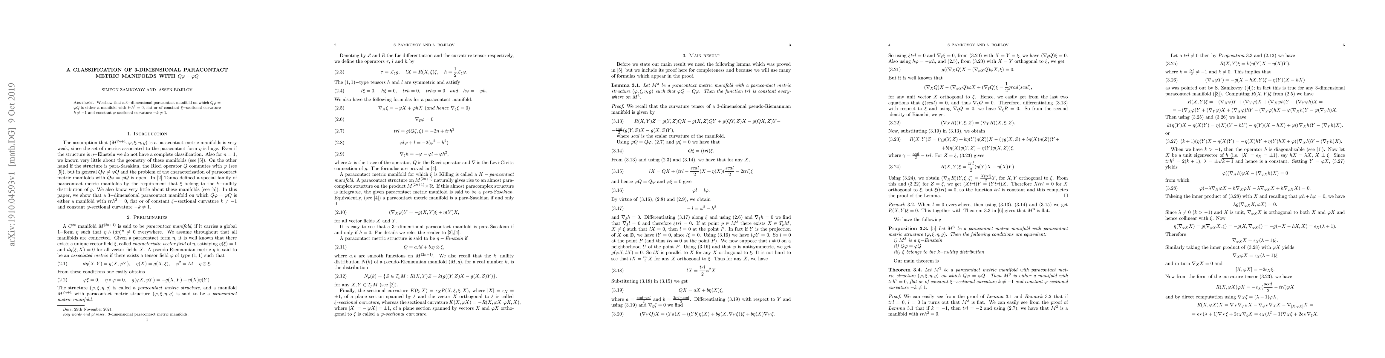 We show that a $3-$dimensional paracontact manifold on which $Q\varphi =\varphi Q$ is either a manifold with $trh^2=0$, flat or of constant $\xi-$sectional curvature $k\neq-1$ and constant $\varphi$-sectional curvature $-k\neq 1$.