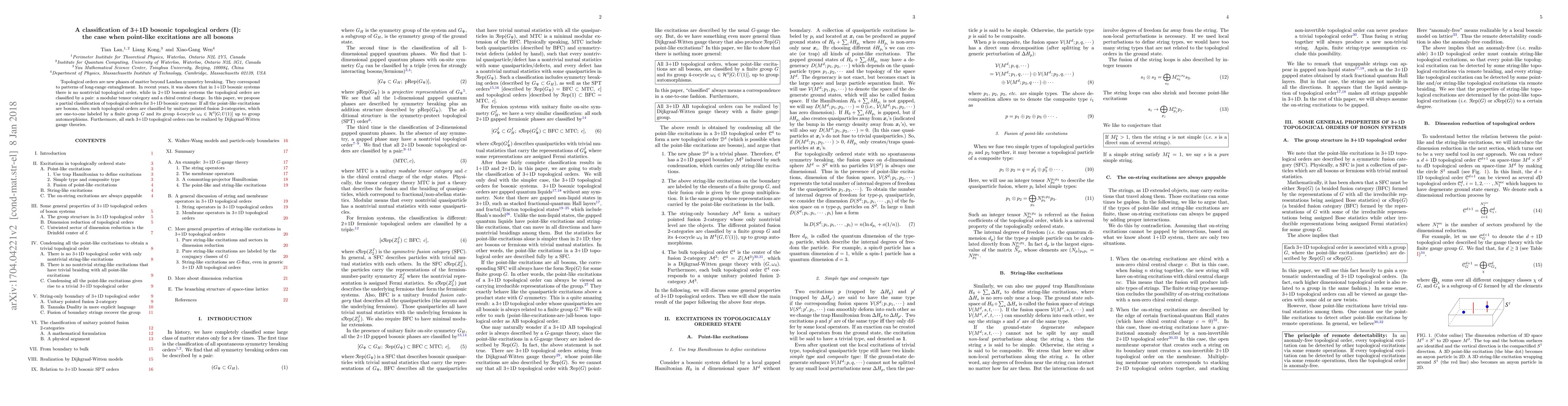 This paper classifies 3+1D bosonic topological orders where all point-like excitations are bosons, showing they are labeled by a finite group $G$ and a group 4-cocycle $\omega_4$, and can be realized through Dijkgraaf-Witten gauge theories.