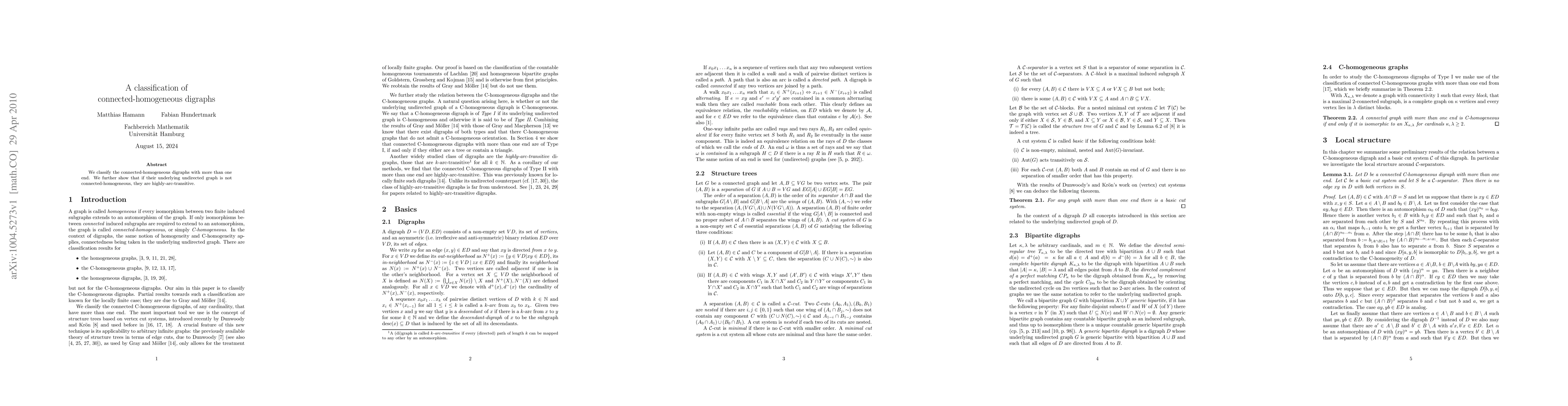 Summary: This paper classifies connected-homogeneous digraphs with multiple ends and demonstrates that those with non-connected-homogeneous underlying undirected graphs exhibit high arc-transitivity.