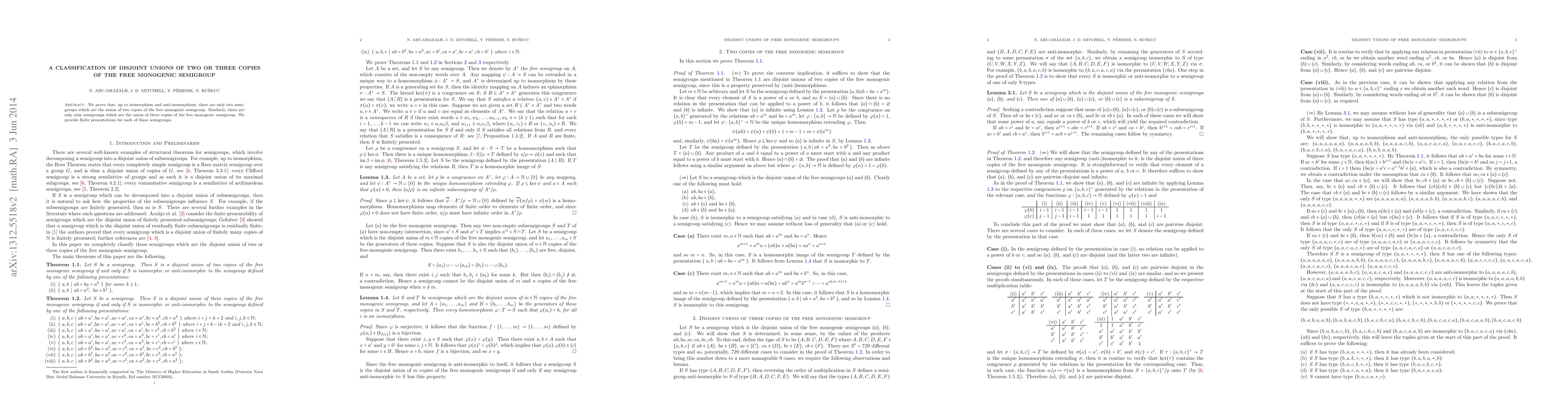This paper classifies disjoint unions of two or three copies of the free monogenic semigroup, proving that there are exactly two such semigroups for two copies and nine for three copies, along with their finite presentations.