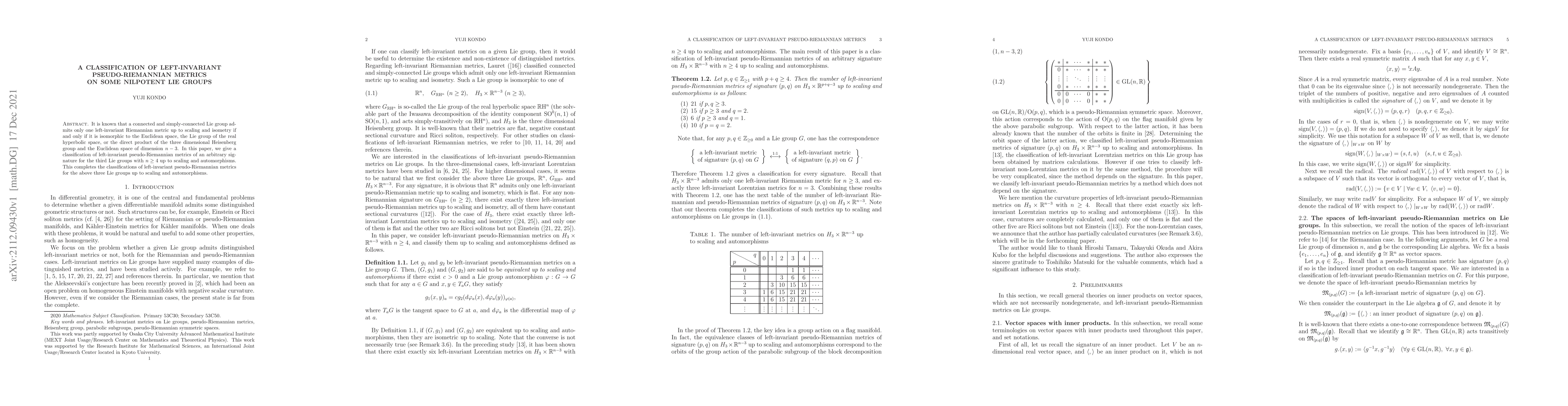 This paper classifies left-invariant pseudo-Riemannian metrics on certain nilpotent Lie groups, specifically focusing on the third group formed by the product of the three-dimensional Heisenberg group and an $(n-3)$-dimensional Euclidean space for $n \geq 4$. It completes the classification for these groups up to scaling and automorphisms.